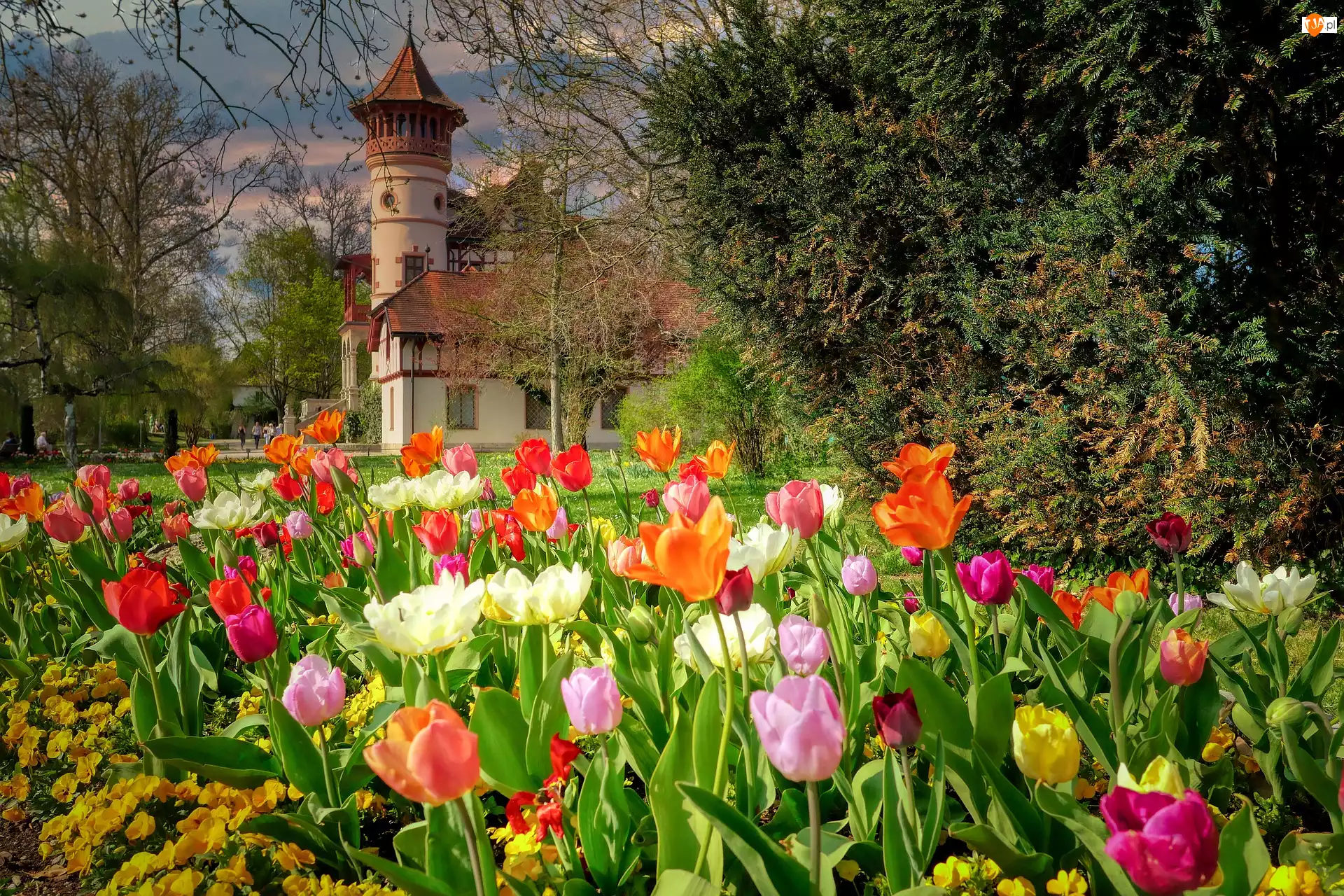 Herrsching am Ammersee, Kwiaty, Zameczek Scheuermanna, Bawaria, Tulipany, Park, Niemcy, Wiosna