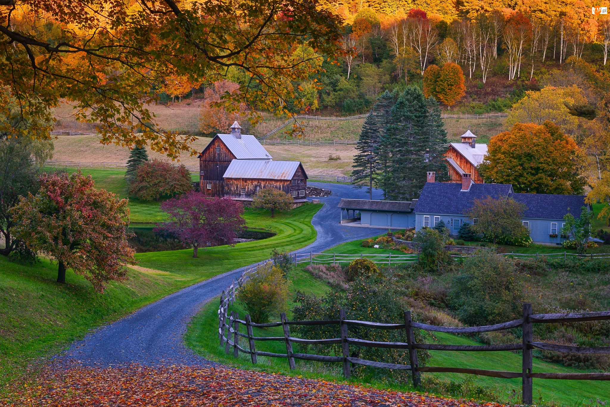 Wioska, Jesień, Stany, Las, Zjednoczone, Droga