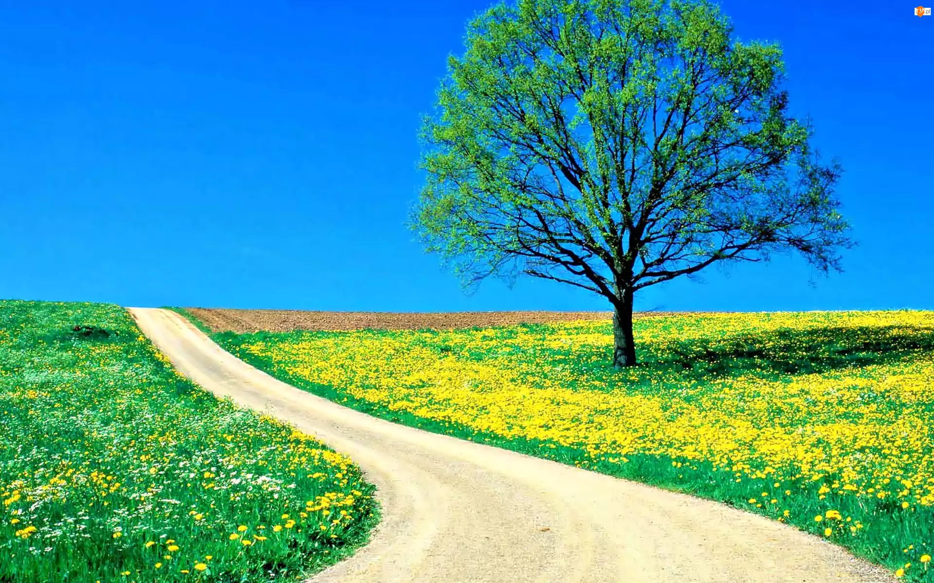 Wiosna, Drzewko, Dróżka, Samotne