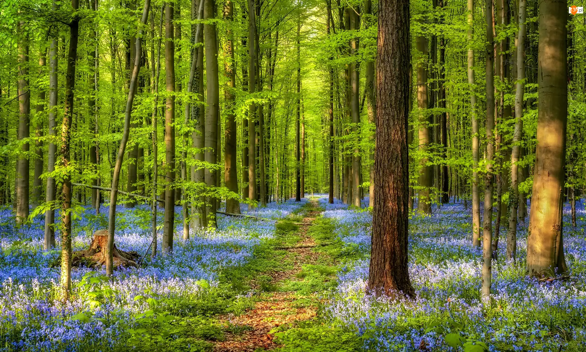 Drzewa, Kwiaty, Las, Wiosna, Ścieżka