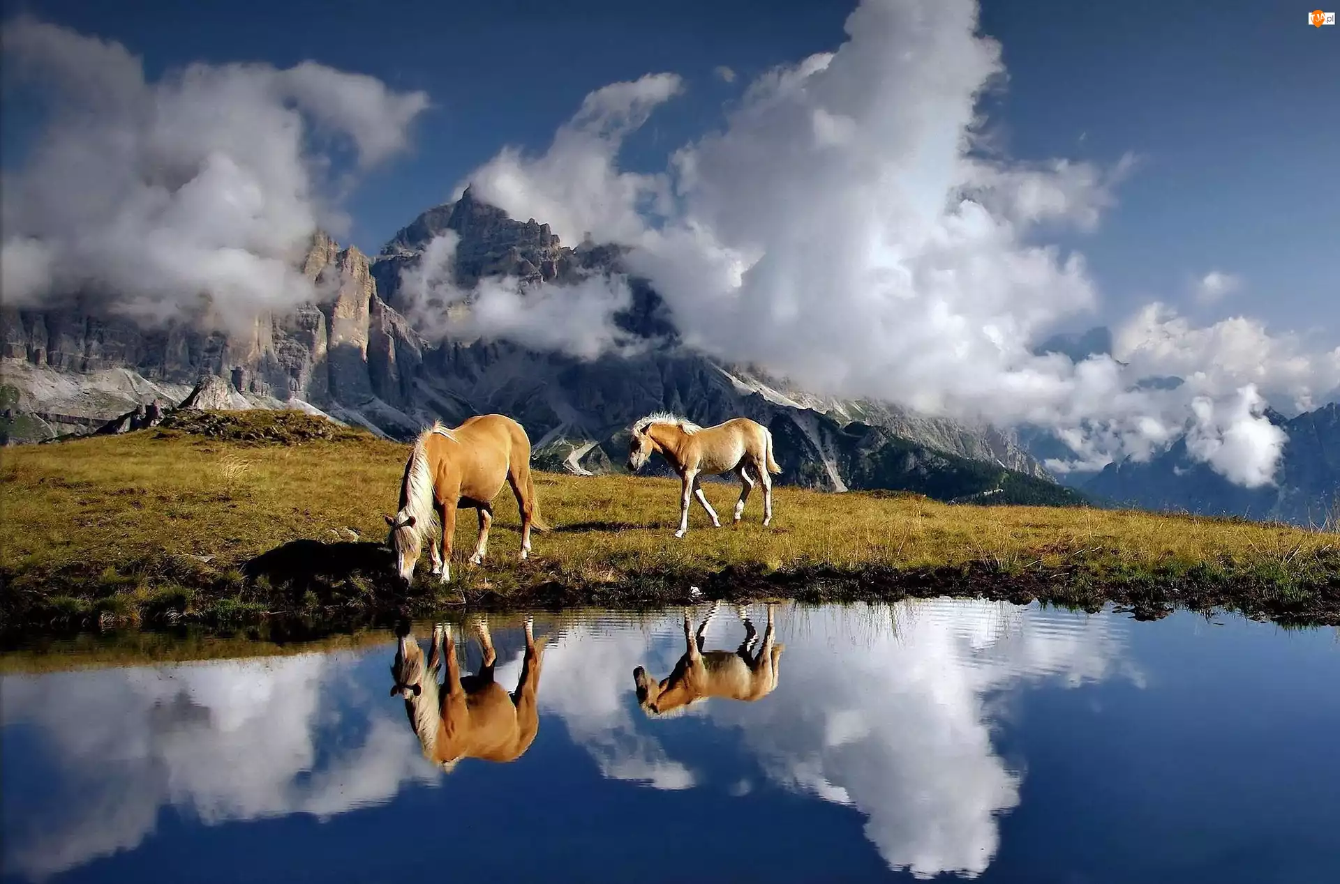 WŁochy, Konie, Alpy, Dolomity, Góry