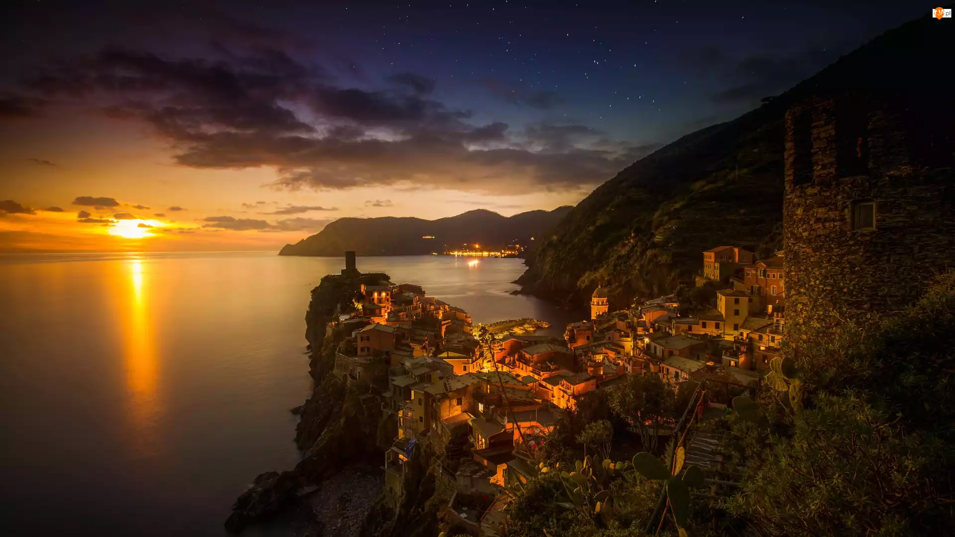 Włochy, Zachód Słońca, Cinque Terre, Vernazza,