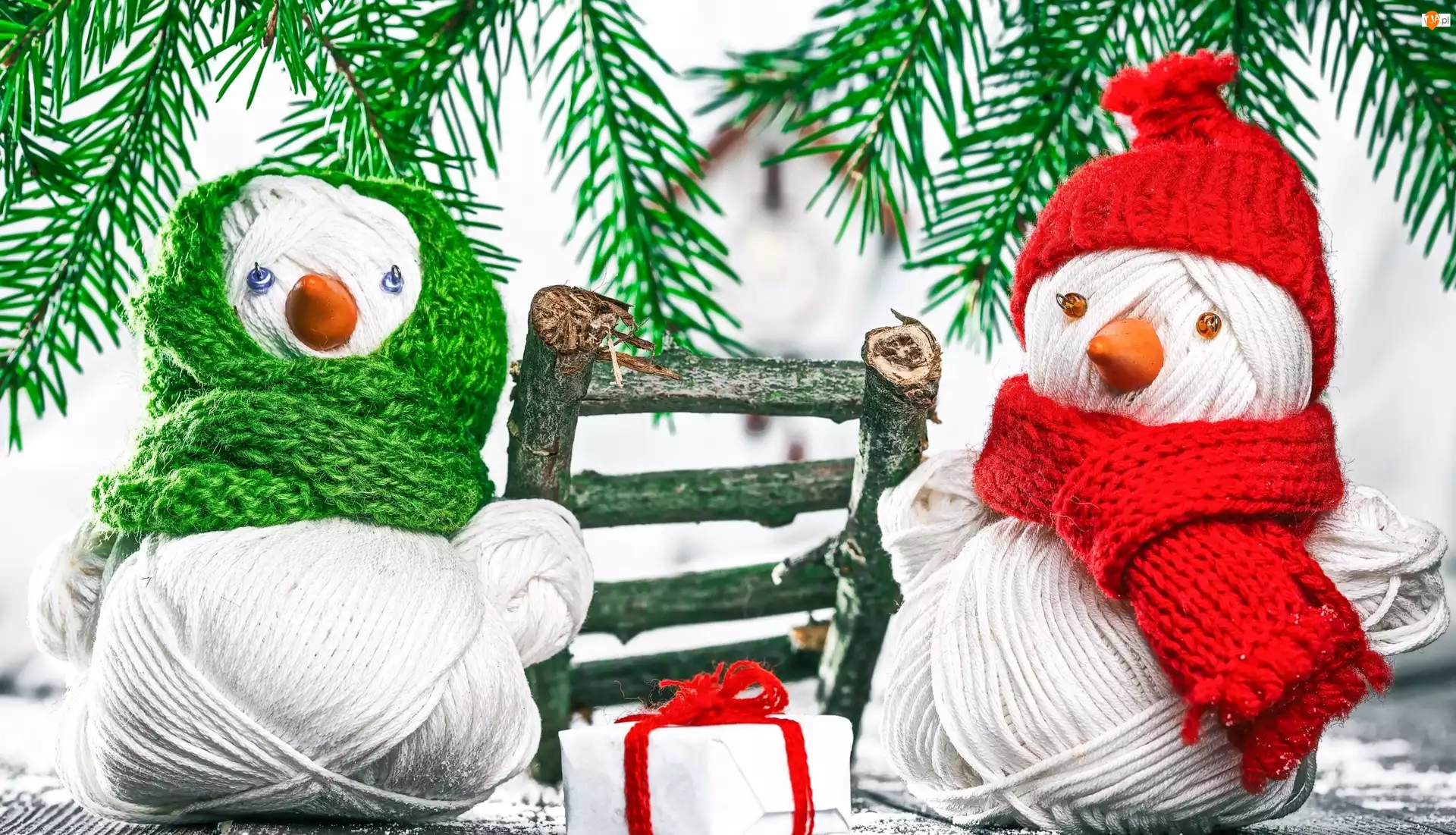 Bałwanki, Prezent, Dekoracja, Gałązki, Świąteczna, Drabina