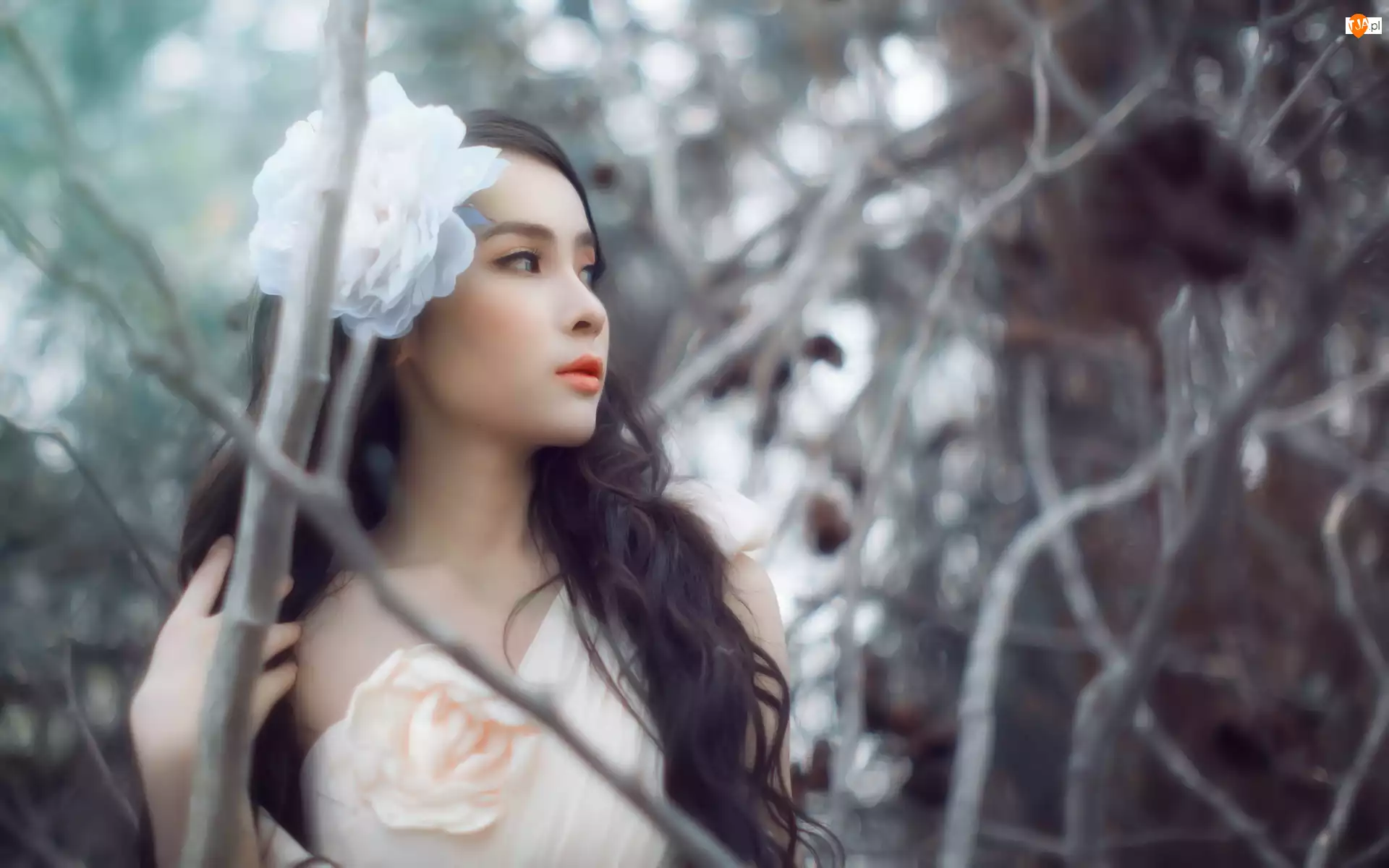 Włosach, Kobieta, Kwiat, Makijaż, We