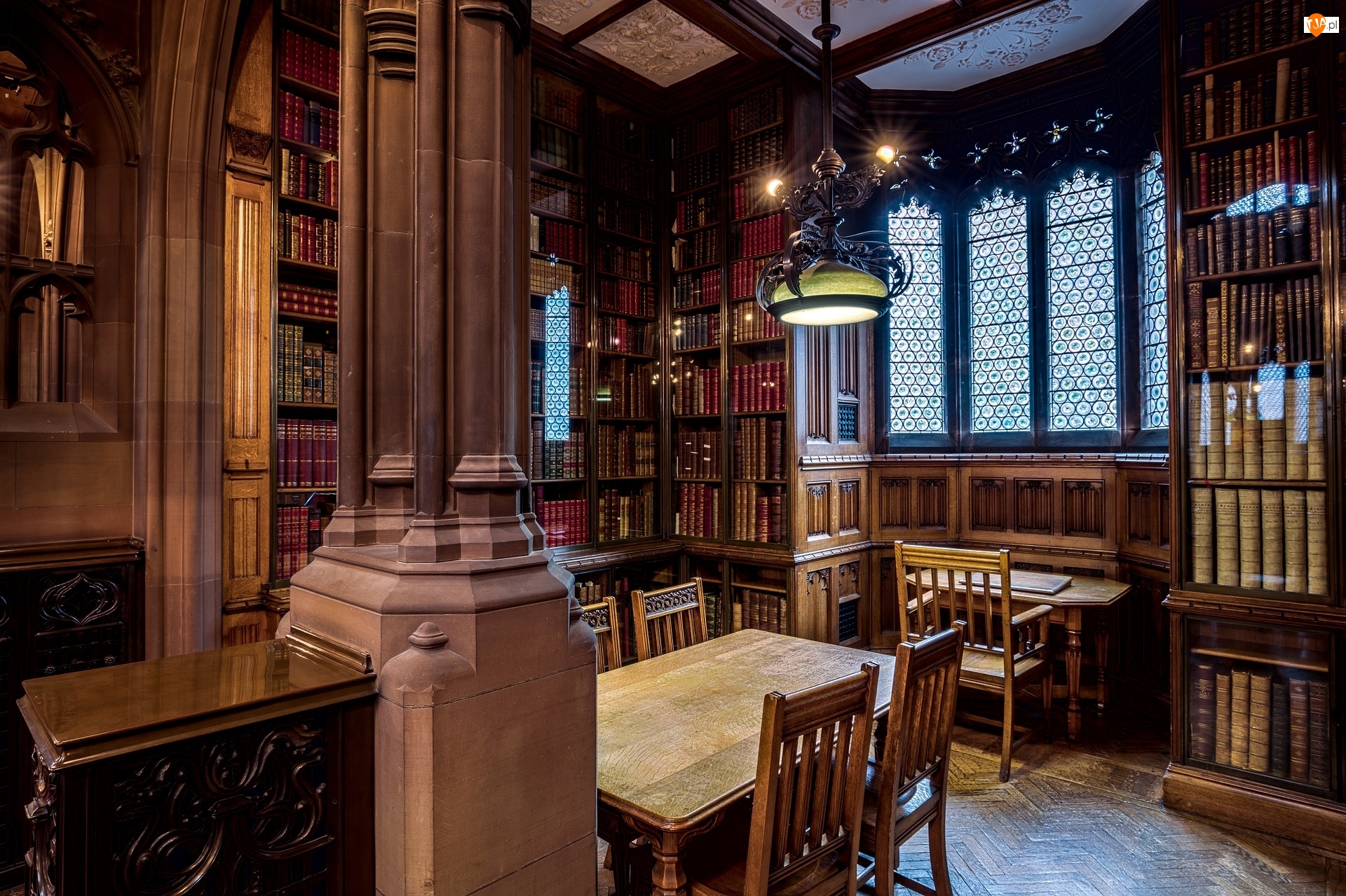 Biblioteka John Rylands Library, Wnętrze, Anglia, Stoły, Manchester, Książki