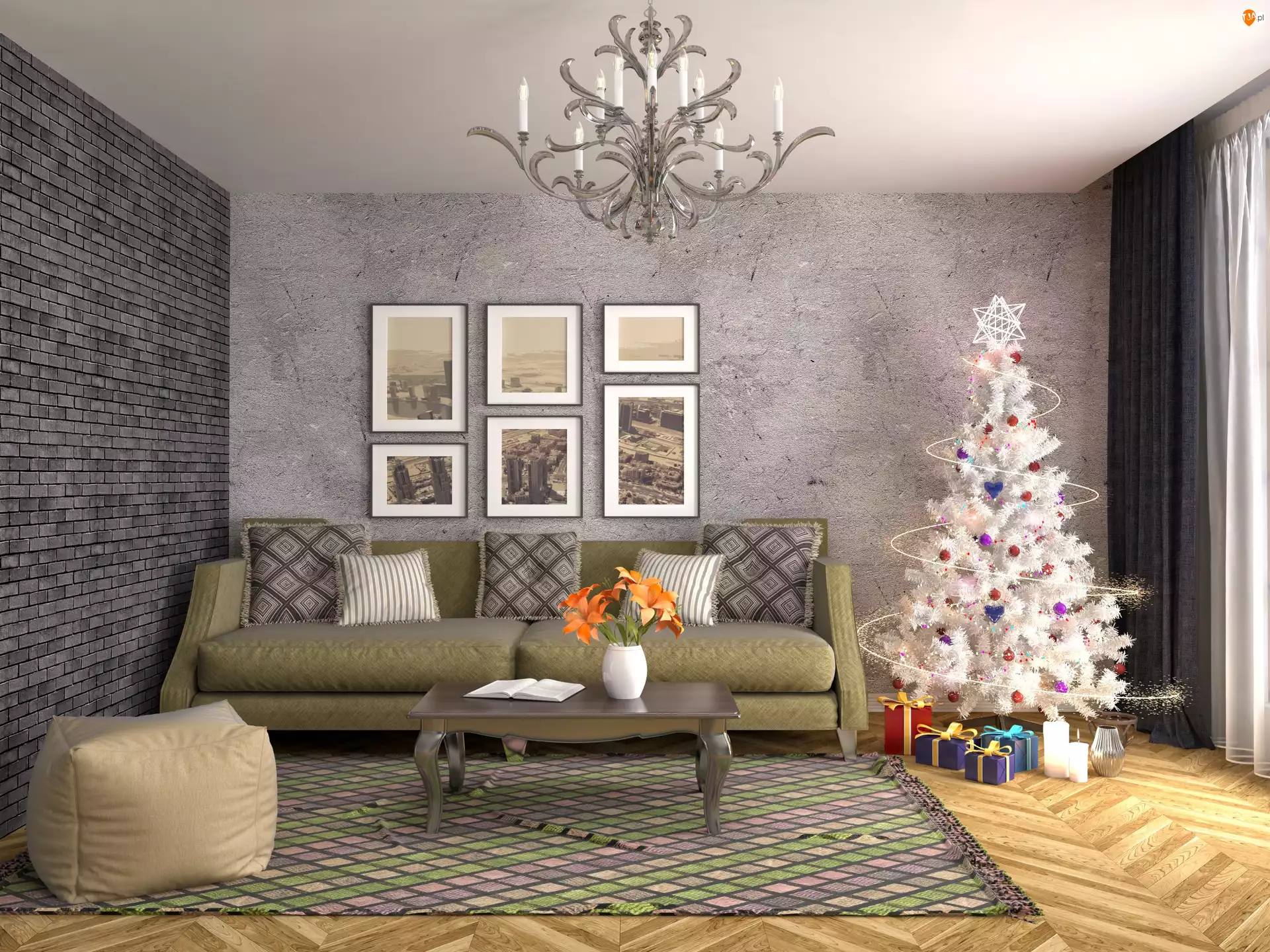 Boże Narodzenie, Pokój, Kanapa, Choinka