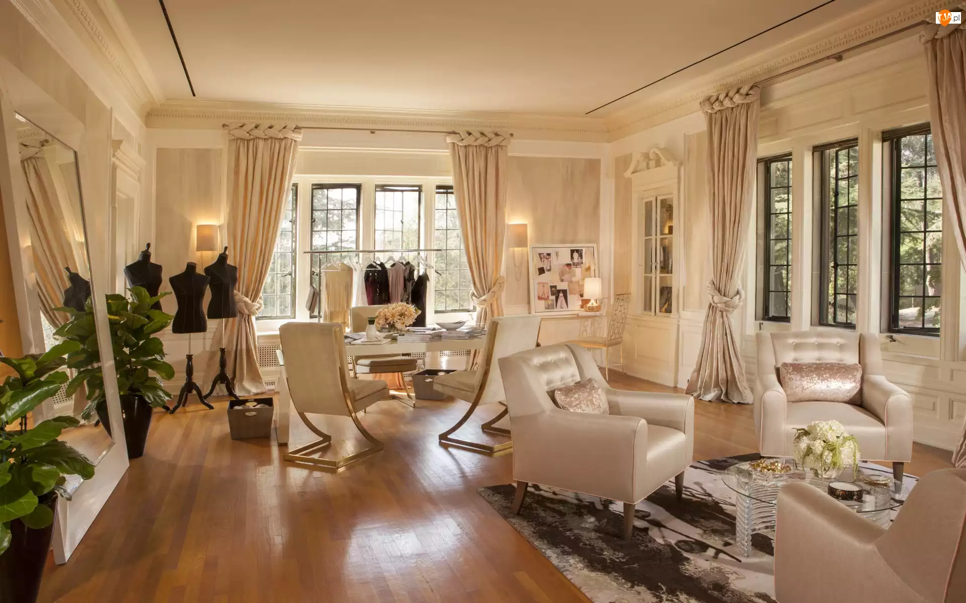 Salon, Manekiny, Meble, Okna