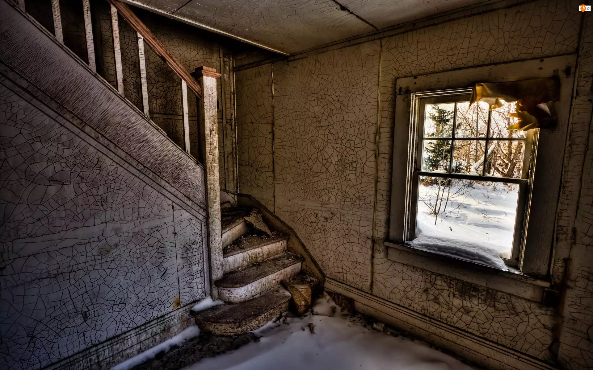 Domu, Zaniedbane, Starego, Wnętrze, Schody