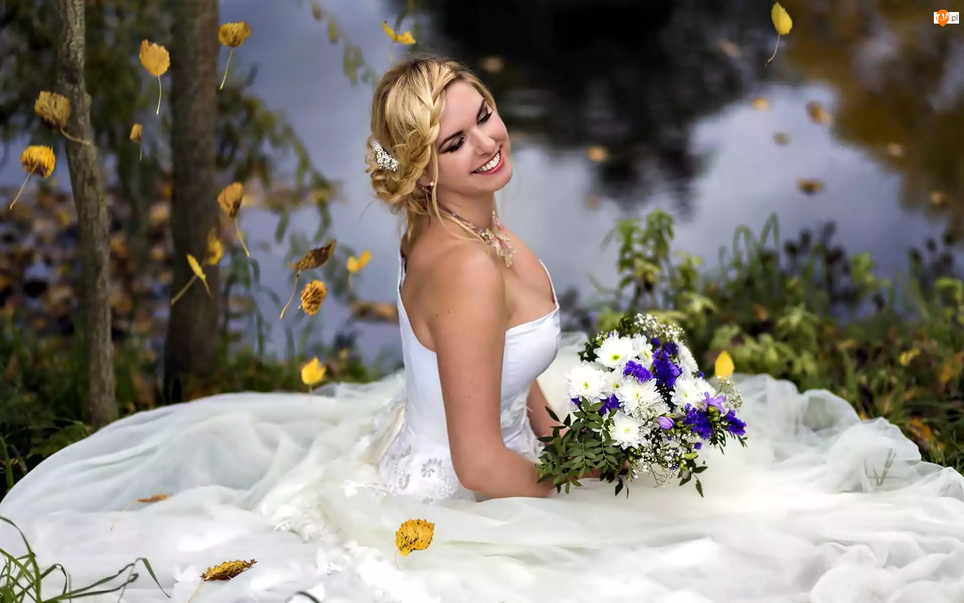 Woda, Bukiet, Panna, Ślub, Drzewa, Młoda, Kwiat�