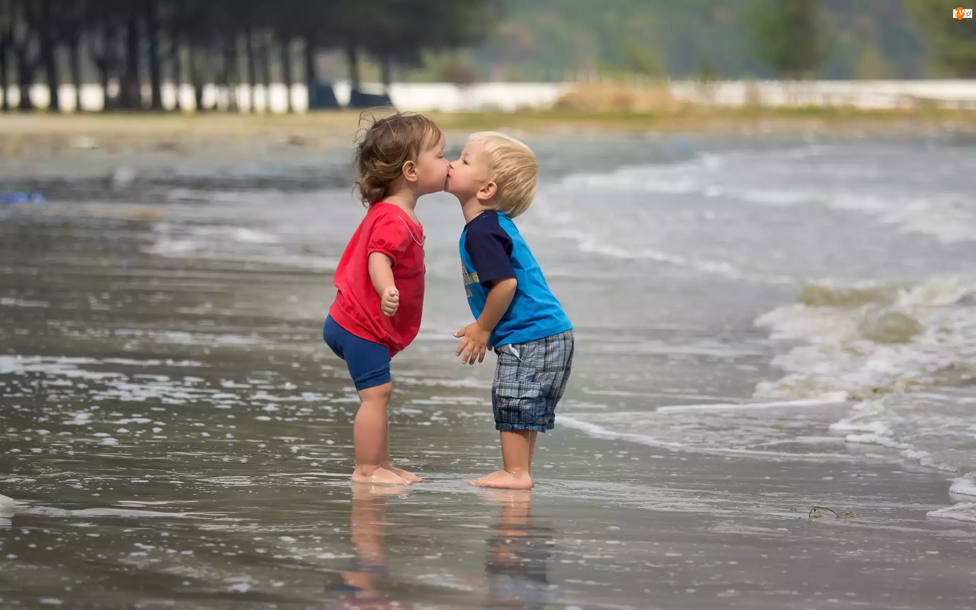 Woda, Dzieci, Chłopiec, Dziewczynka, Buziak