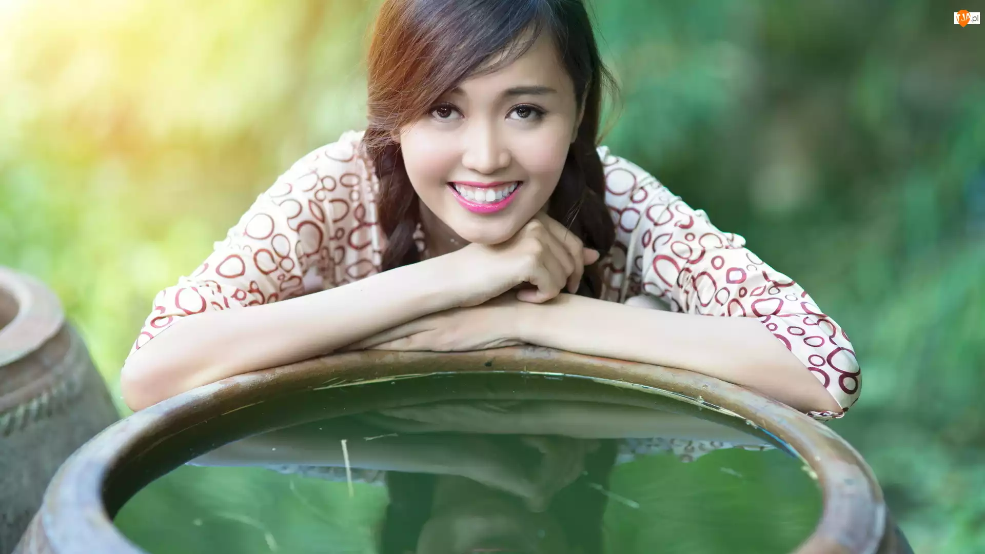 Woda, Dziewczyna, Uśmiech, Dzbanek