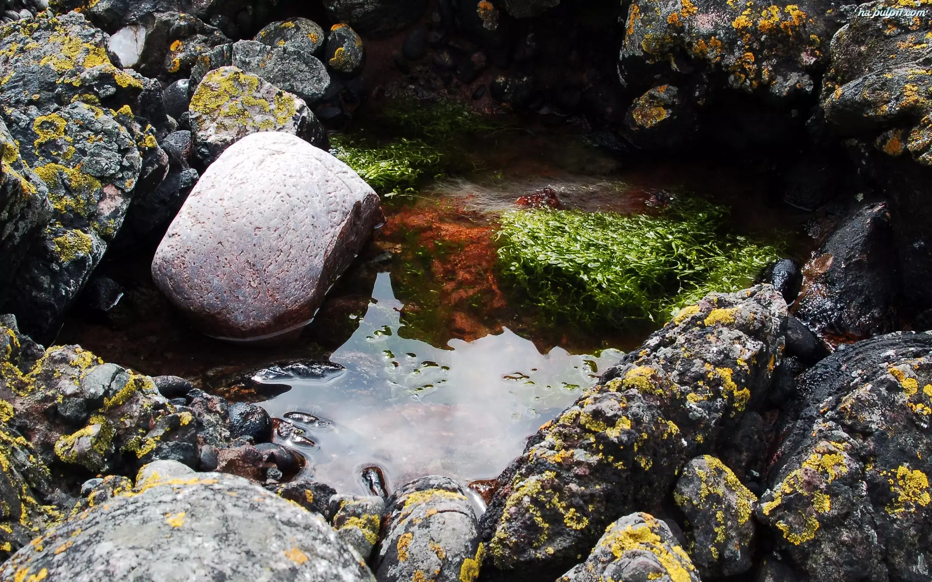 Woda, Kamienie, Mech, Skały, Wodorosty