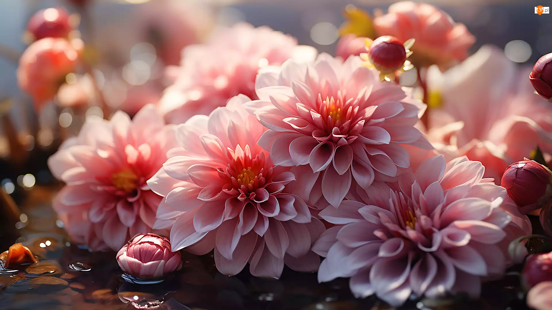 Woda, Kwiaty, Dalie