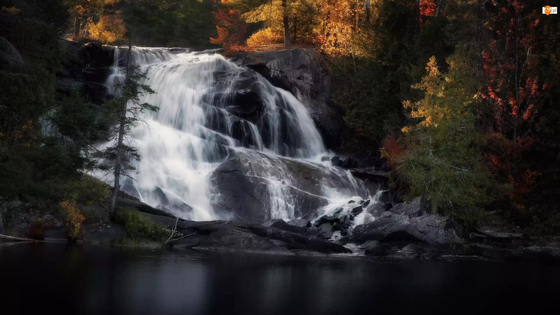 Drzewa, Wodospad High Falls, Szlak Barron Canyon, Kanada, Jesień, Prowincja Ontario