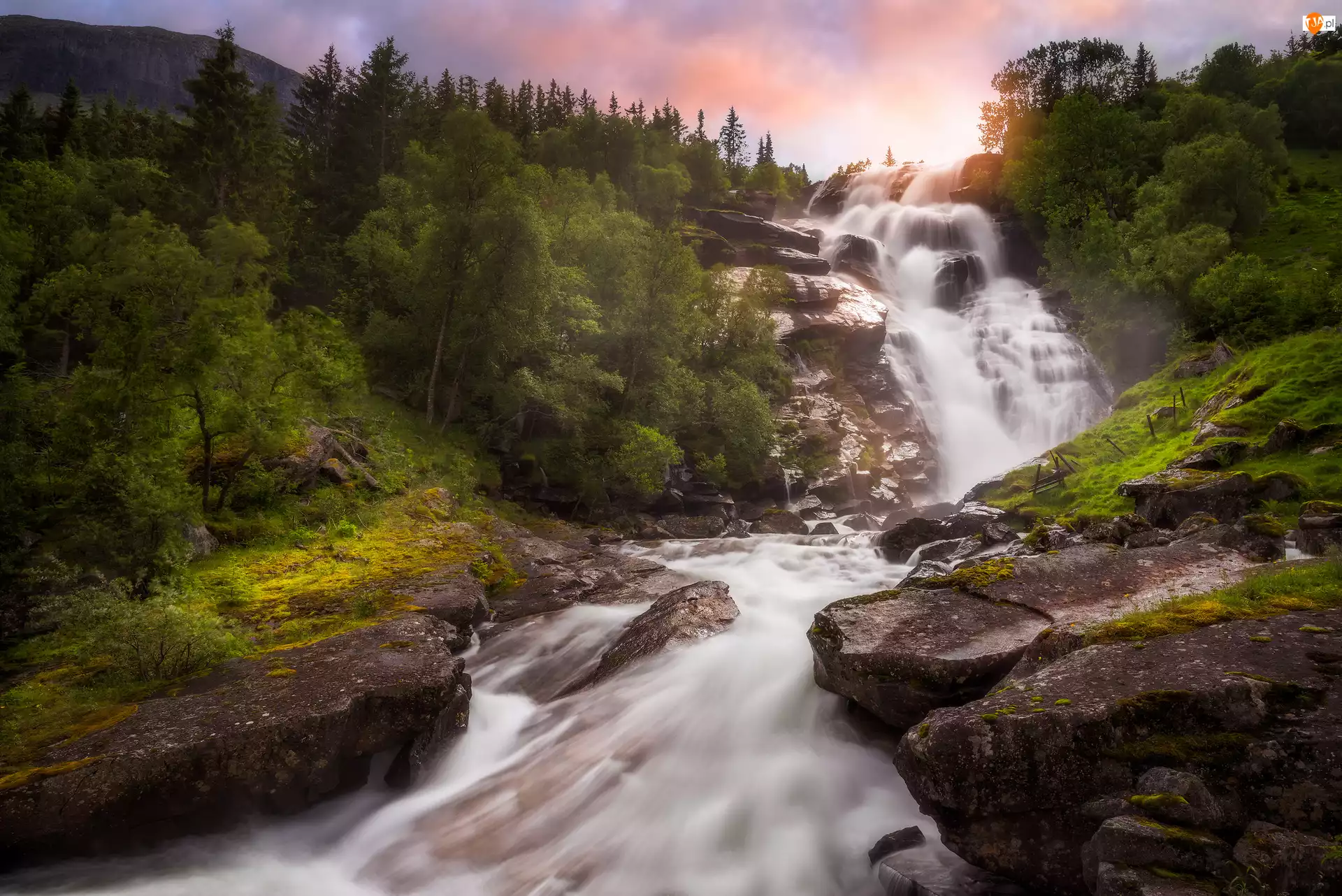 Wodospad między skałami