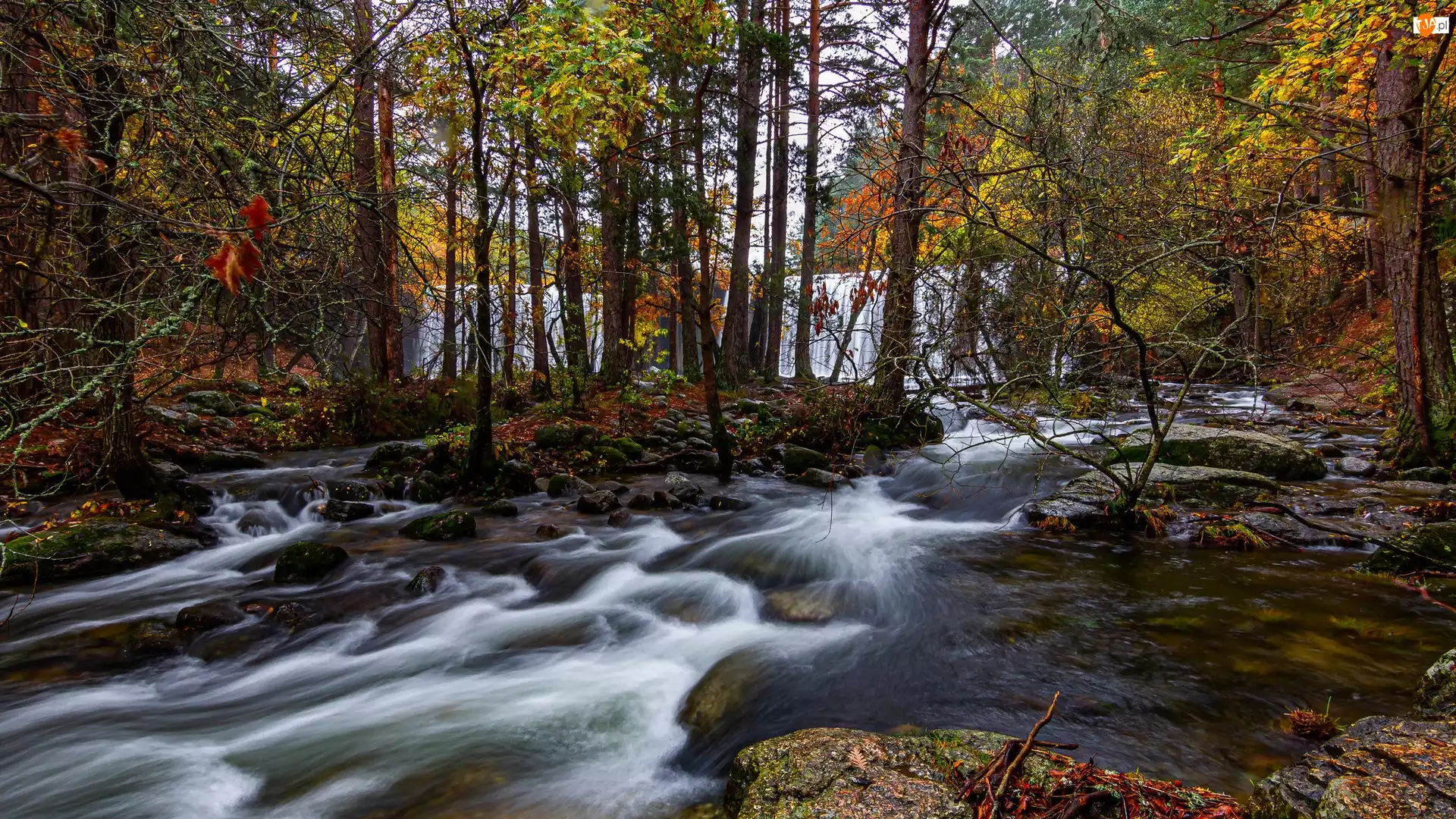 Wodospad, Rzeka, Drzewa, Jesień, Kaskada
