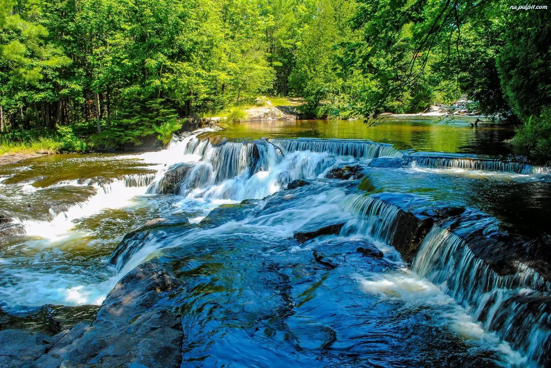 Wodospad, Lato, Rzeka, Las