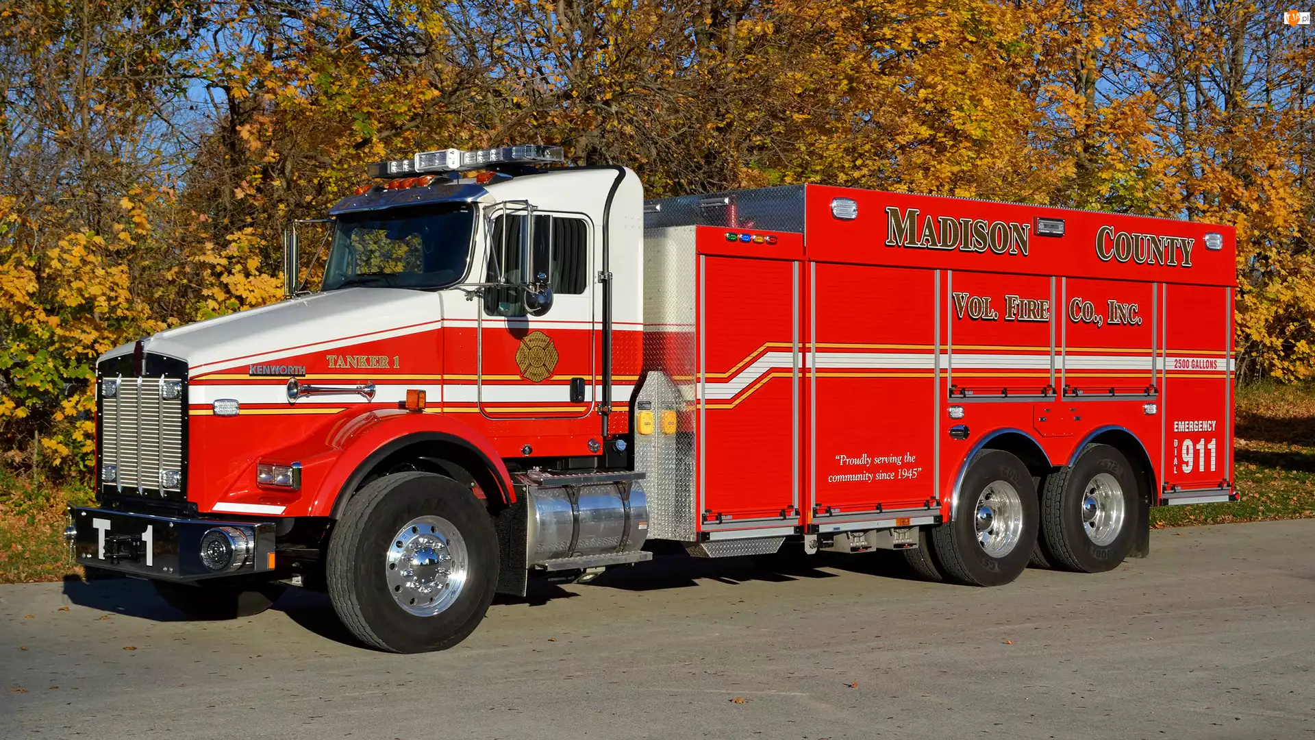 Droga, Straż pożarna, Kenworth T-800, Wóz strażacki, Drzewa