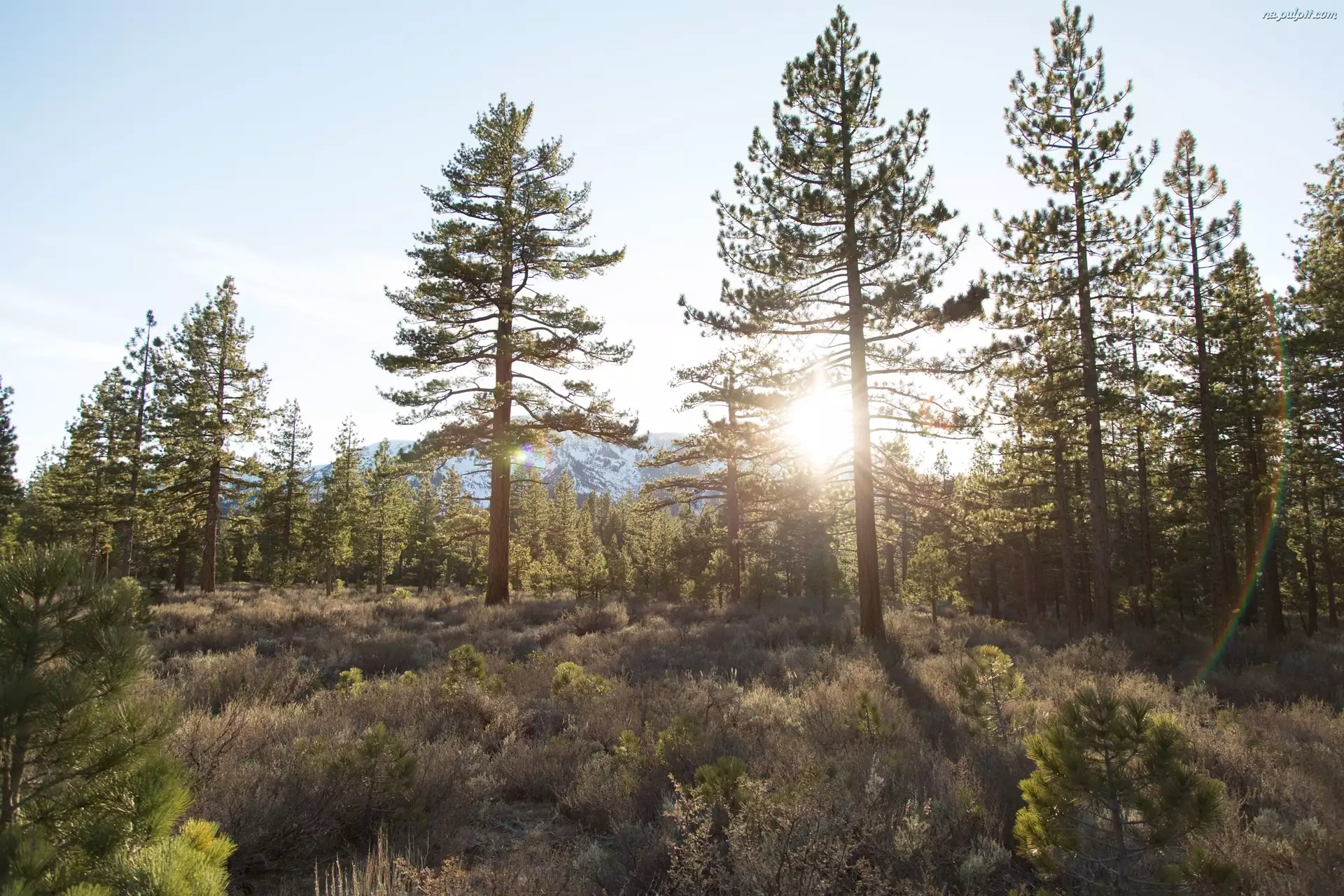 Wrzosy, Wschód, Las, Słońca, Drzewa
