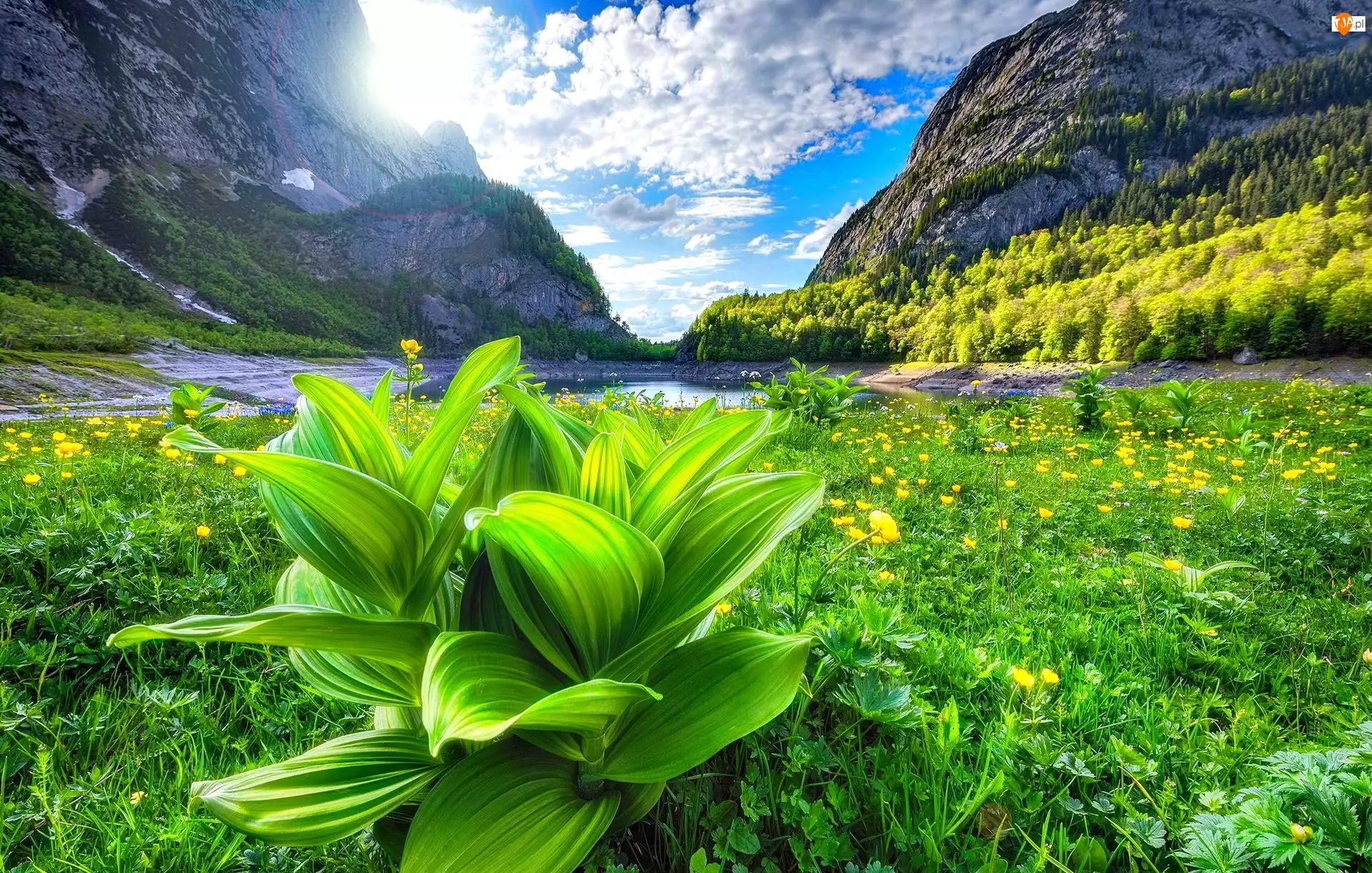 Wschód słońca, Łąka, Góry, Jezioro