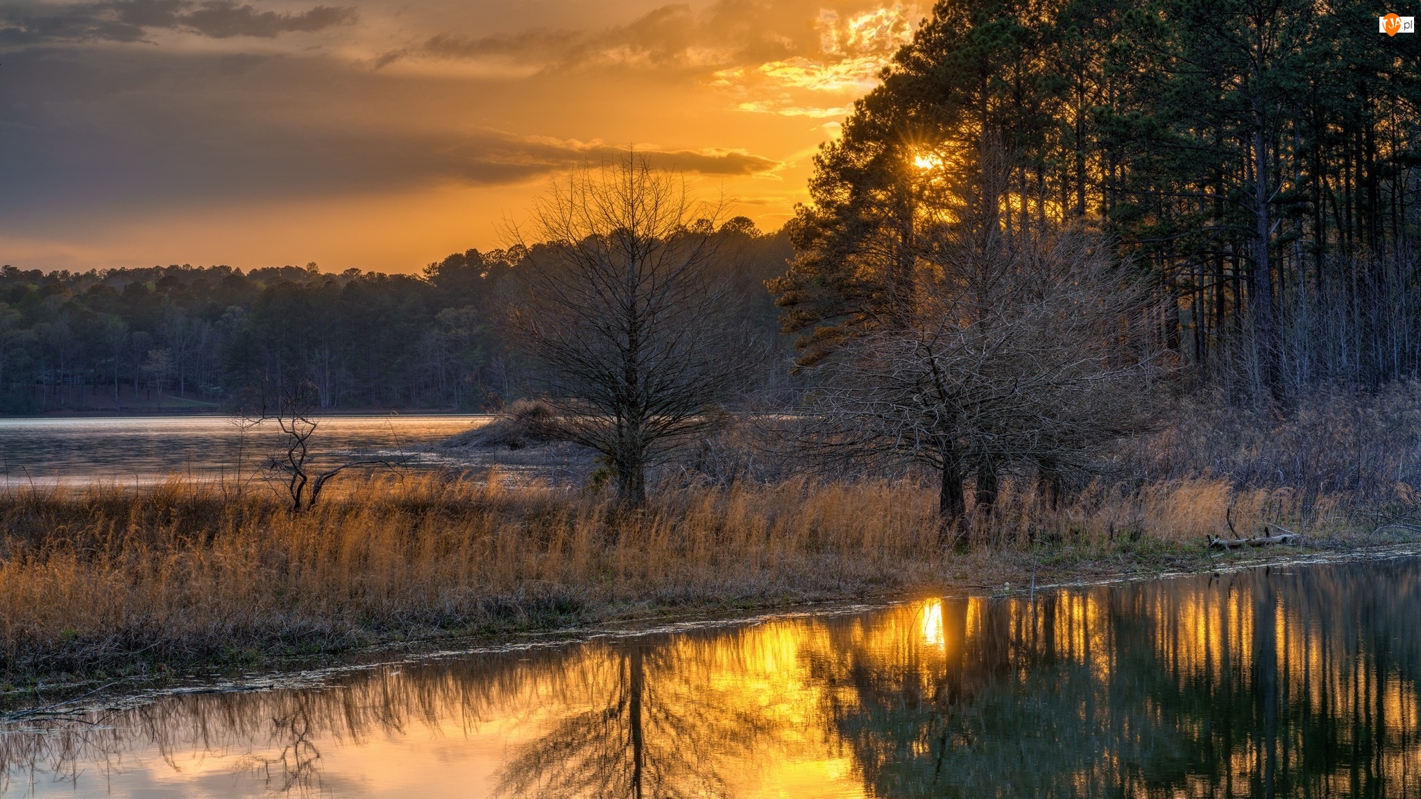 Zachód słońca, Rzeka, Las