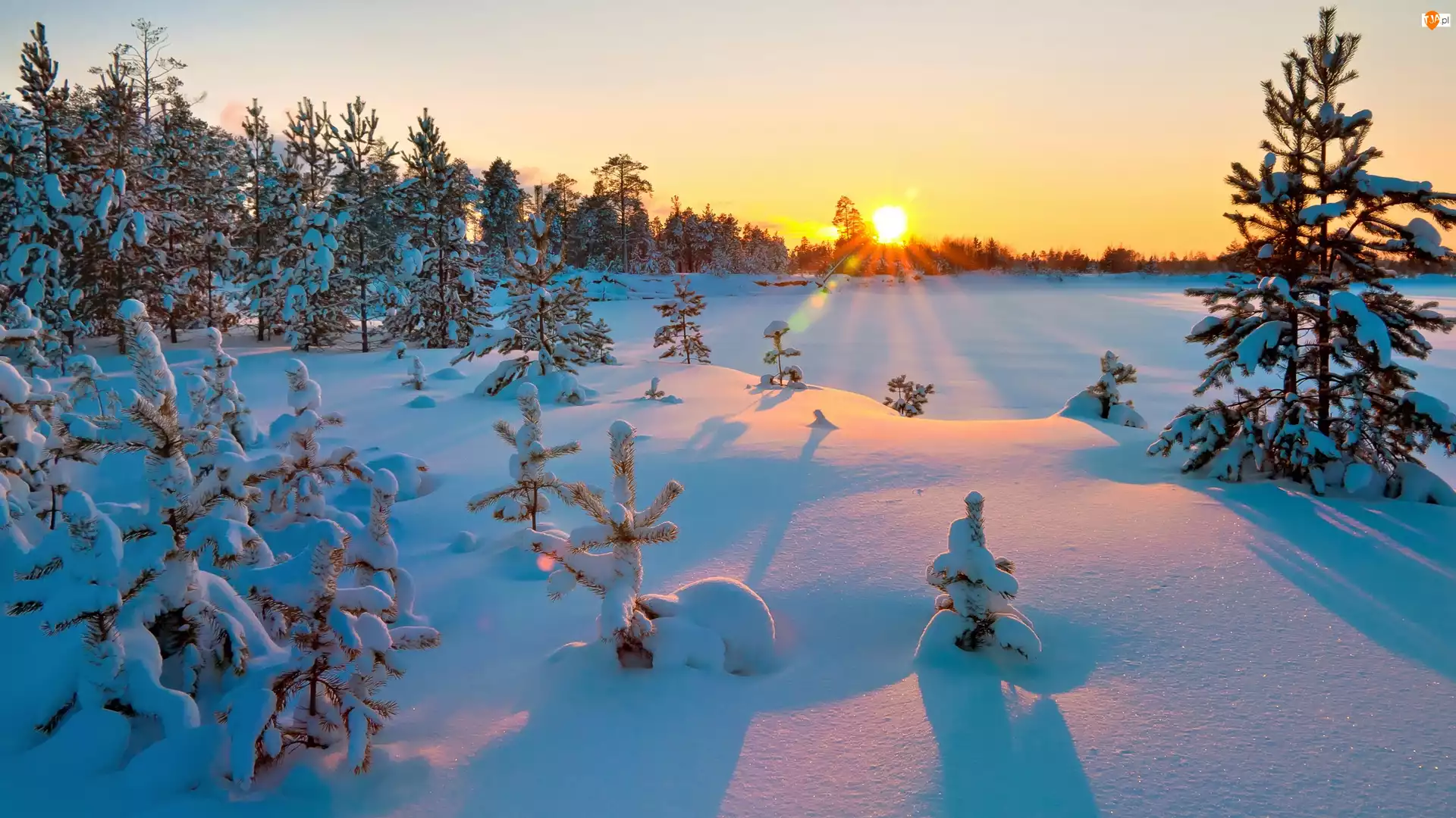Wschód słońca, Zima, Świerki