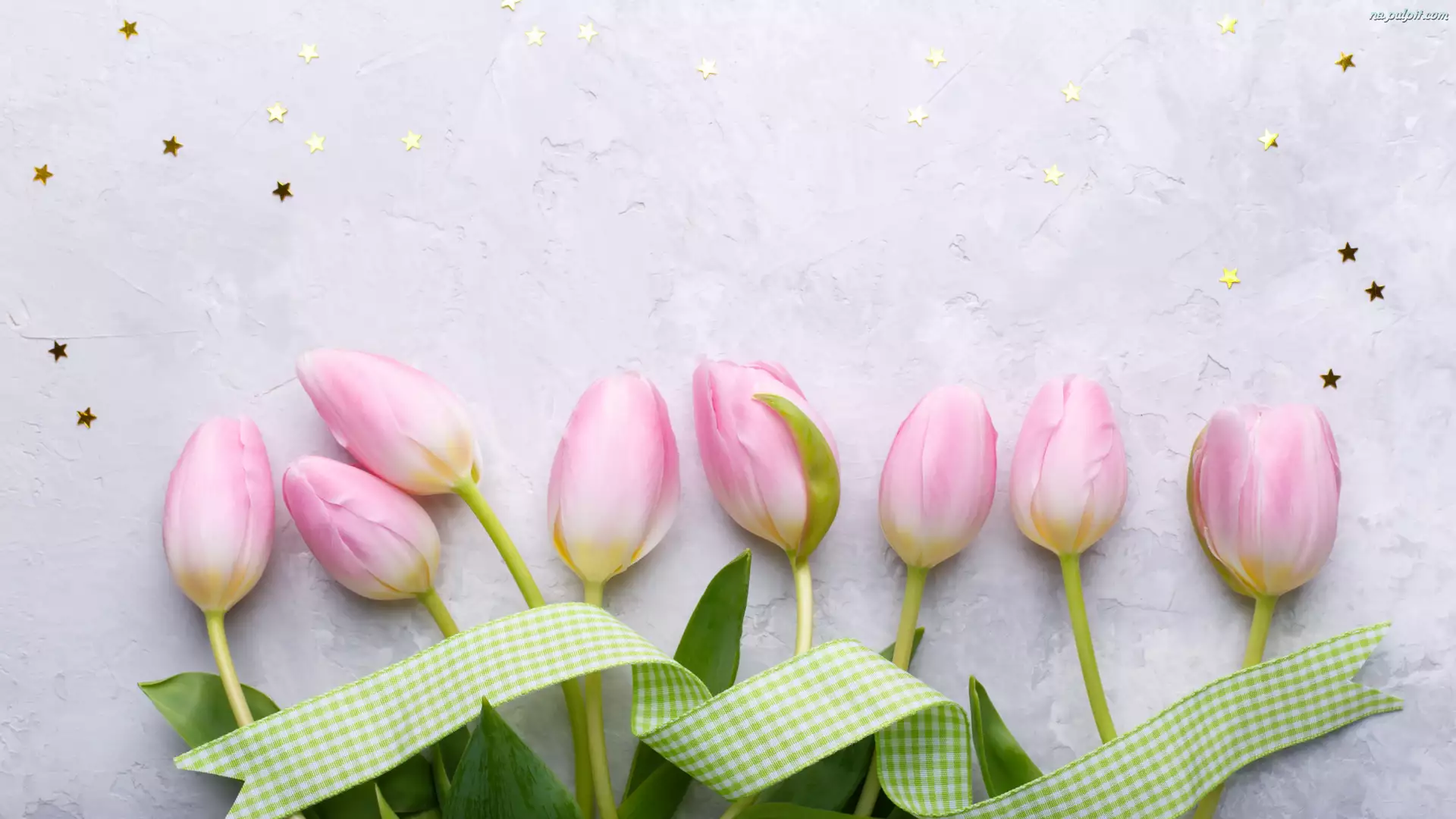 Wstążka, Bladoróżowe, Tulipany, Gwiazdki