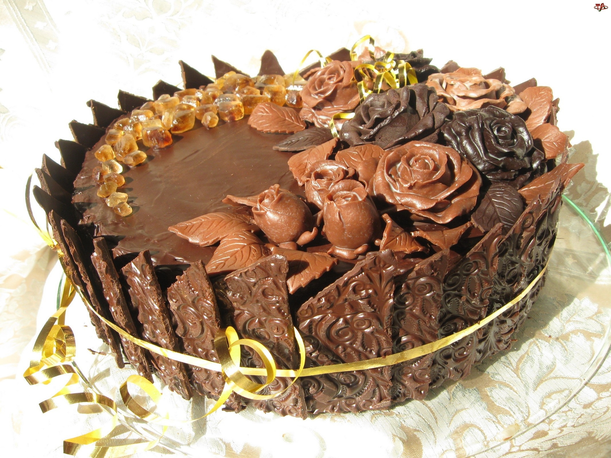 Wstążka, Tort, Czekoladowe, Czekoladowy, Ozdoby