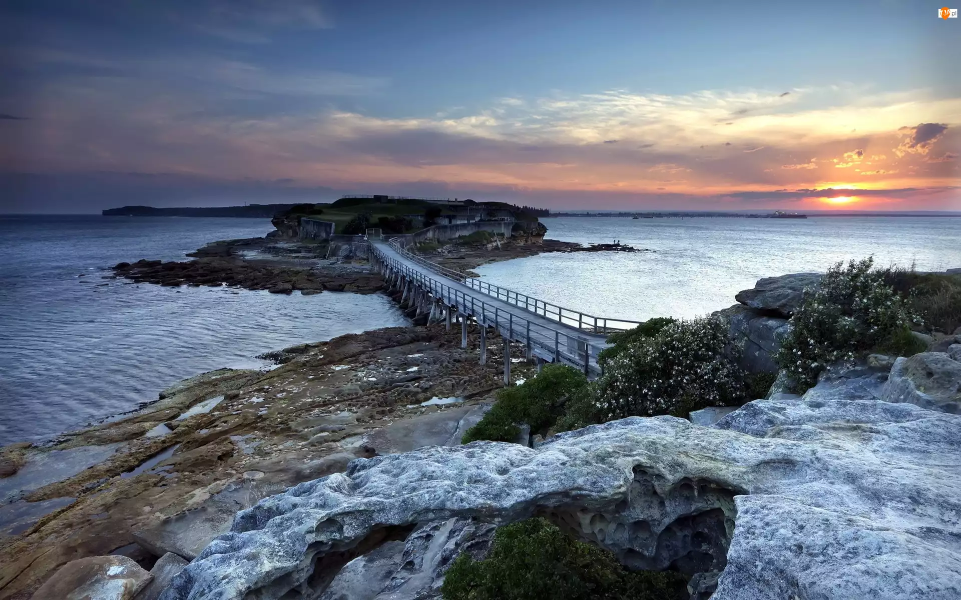 Wybrzeże, Most, Zachód, Skały, Słońca, Wyspa