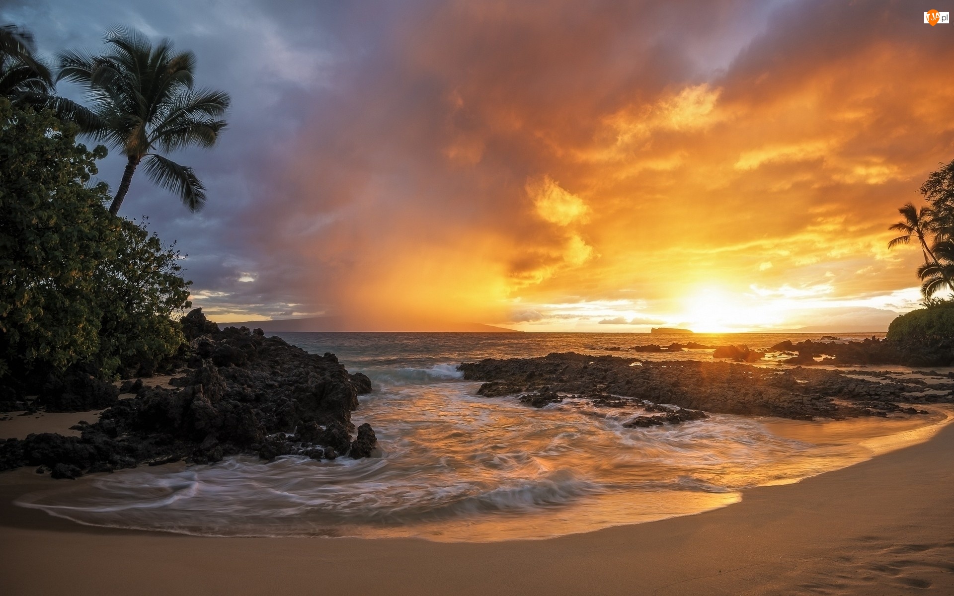 Wybrzeże, Plaża, Zachód Słońca, Morze