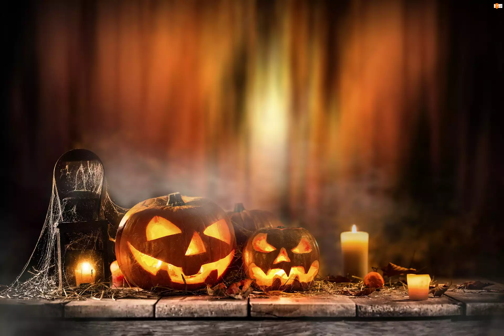 Świece, Halloween, Dynie