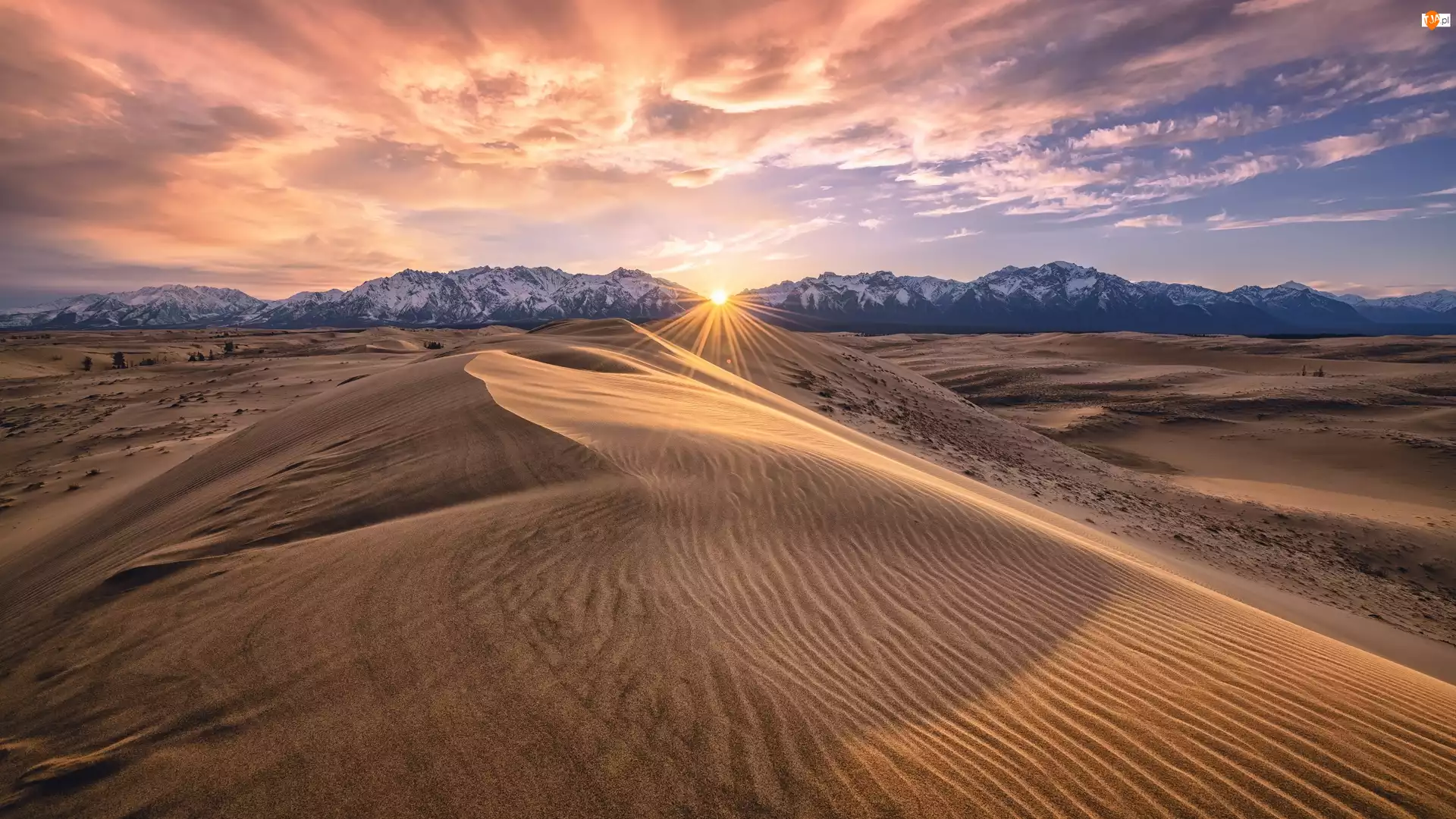 Syberia, Góry, Chara Sands, Kraj Zabajkalski, Wydmy, Promienie słońca, Rosja, Piaskowe