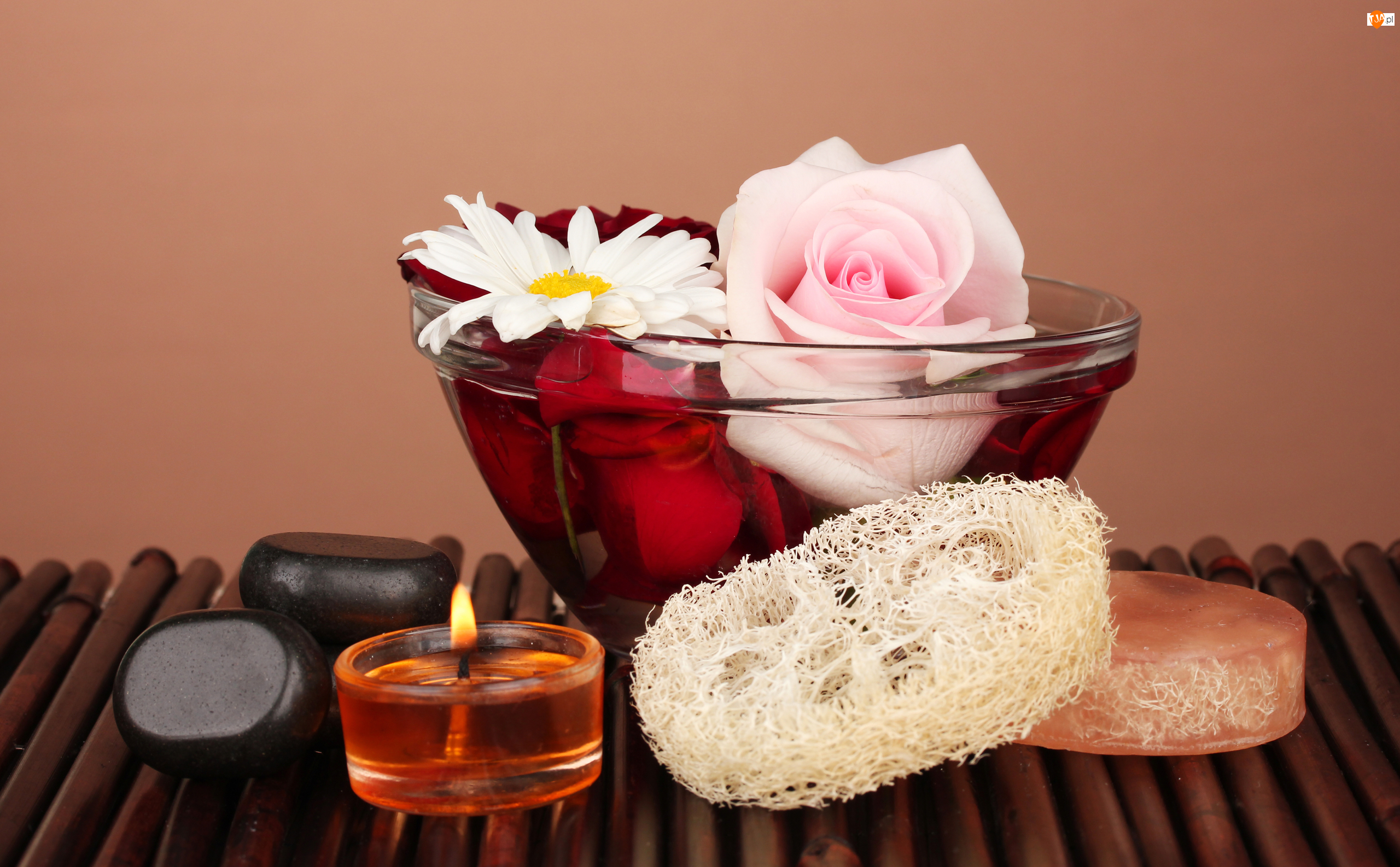 Kamienie, Róża, Świeca, SPA, Miseczka