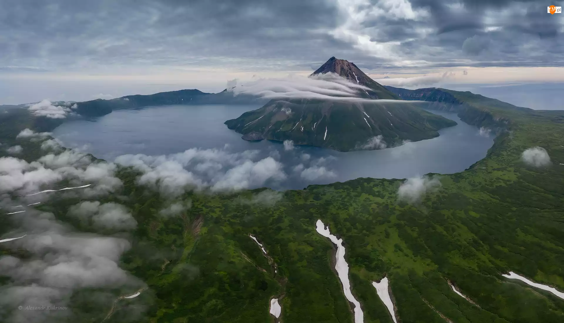 Wyspa Onekotan, Wyspy Kurylskie, Rosja, Wulkan Krenicyn, Obwód sachaliński, Z lotu ptaka, Chmury