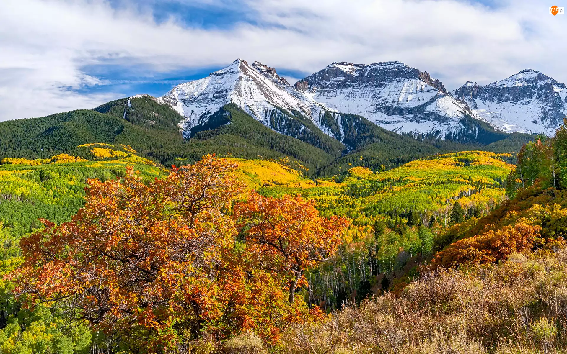 Wzgórza, Góry, Kolorowe, Kolorado, San Juan Mountains, Jesień, Stany Zjednoczone, Drzewa
