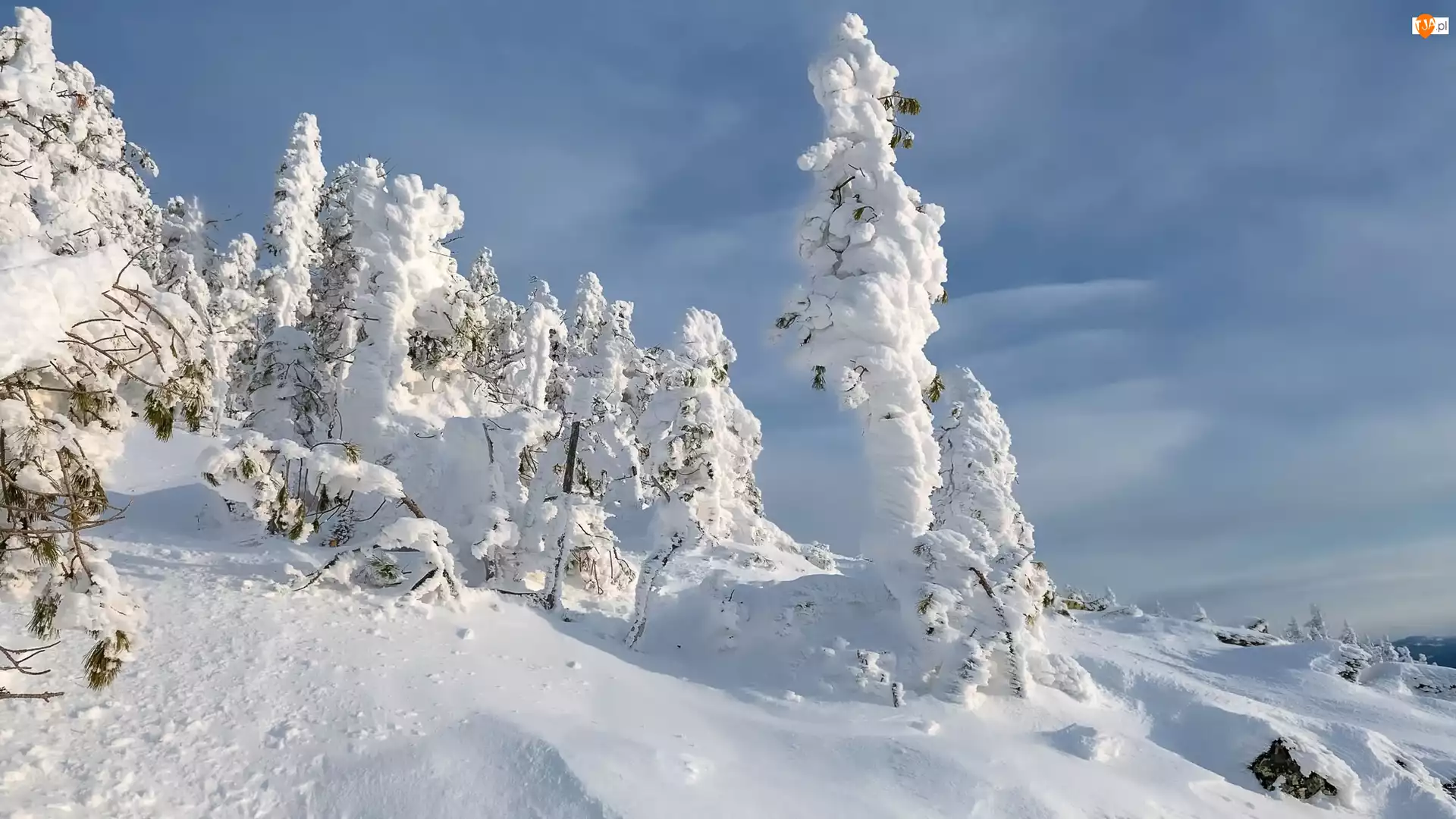 Zaśnieżone, Wzgórze, Śnieg, Zima, Drzewa
