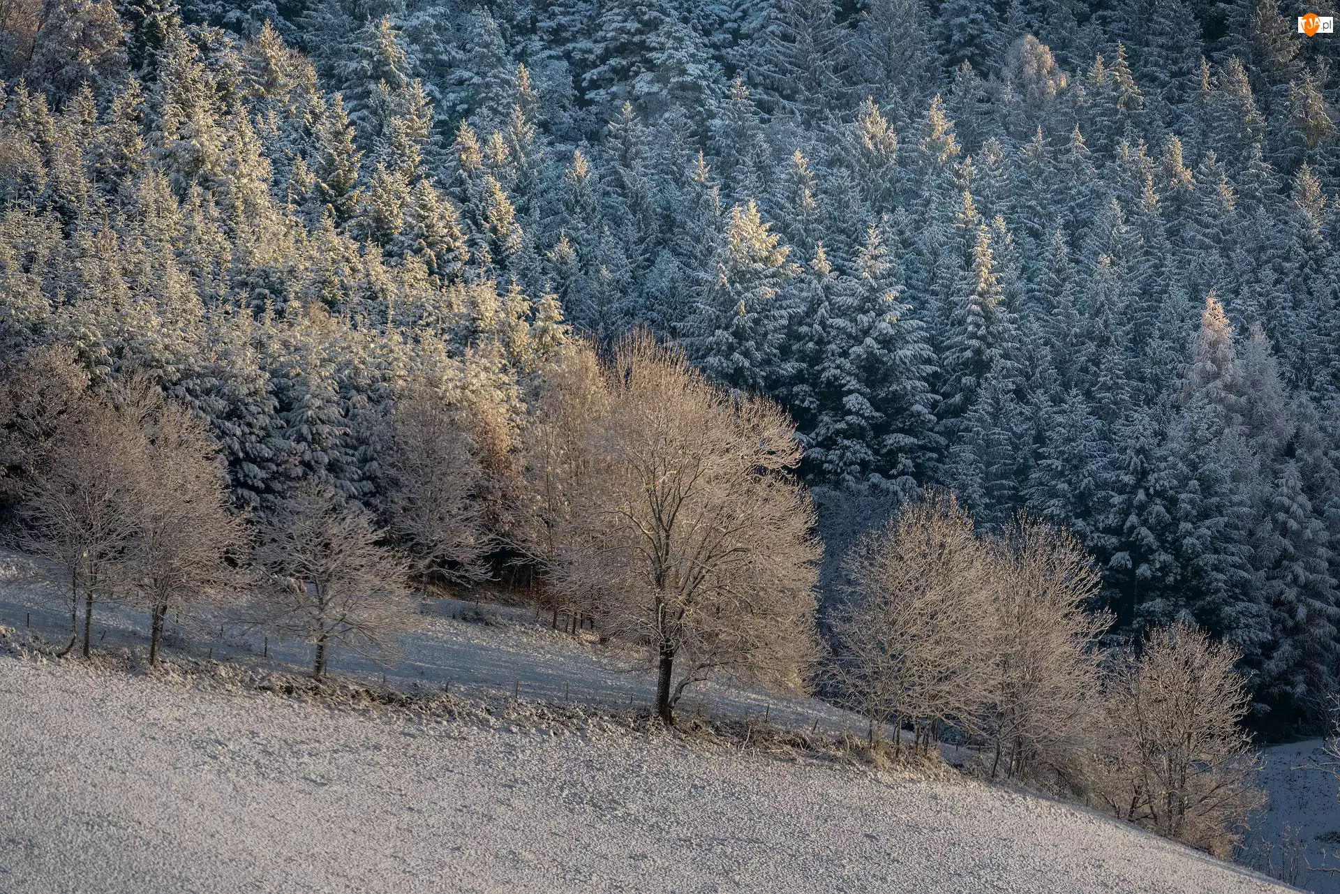 Następna >>Drzewa, Mgła, Słoneczne, Las, Światło, Przebijające, Je