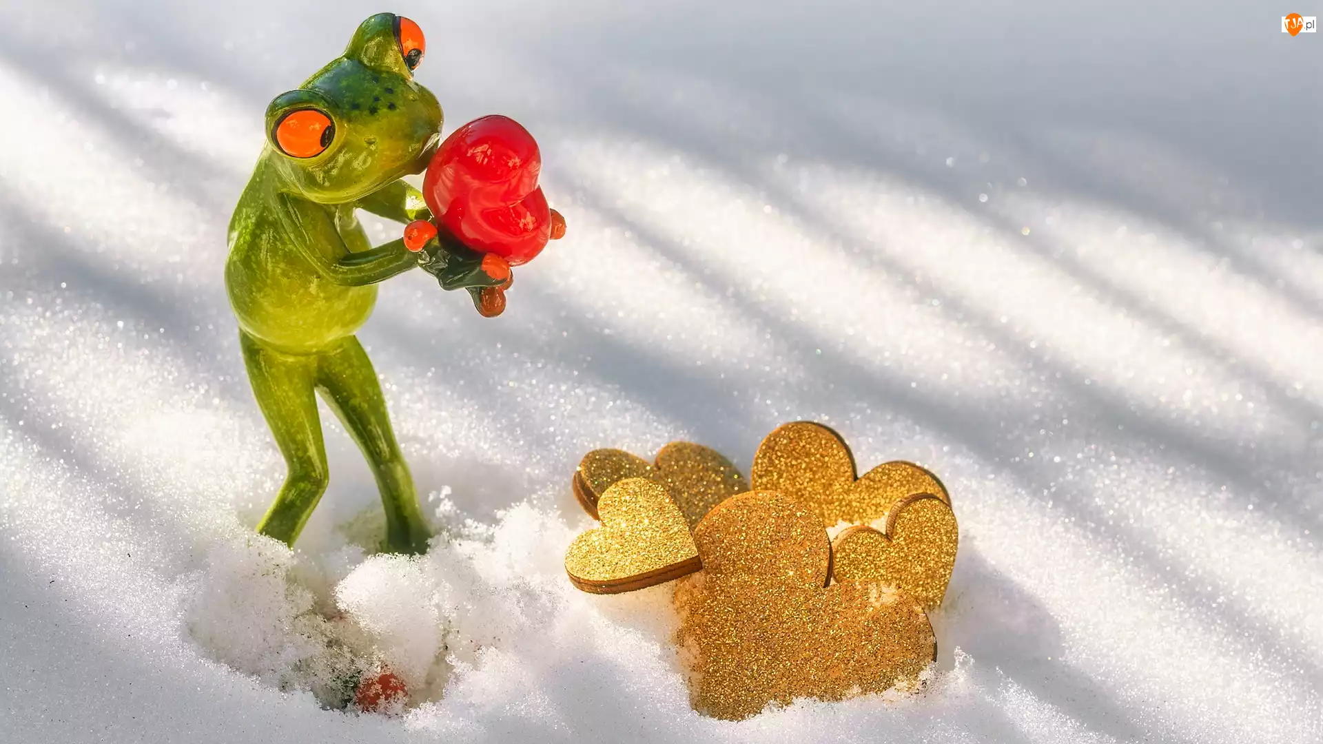 Żaba z sercem w śniegu