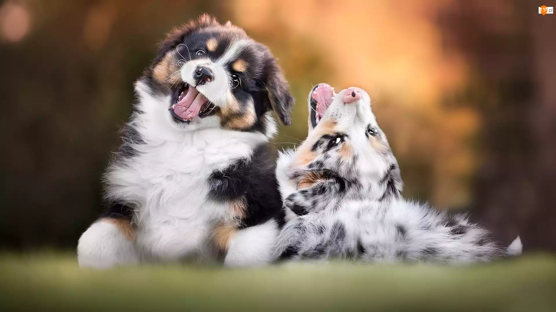 Szczeniaki, Zabawa, Psy, Dwa, Owczarki australijskie