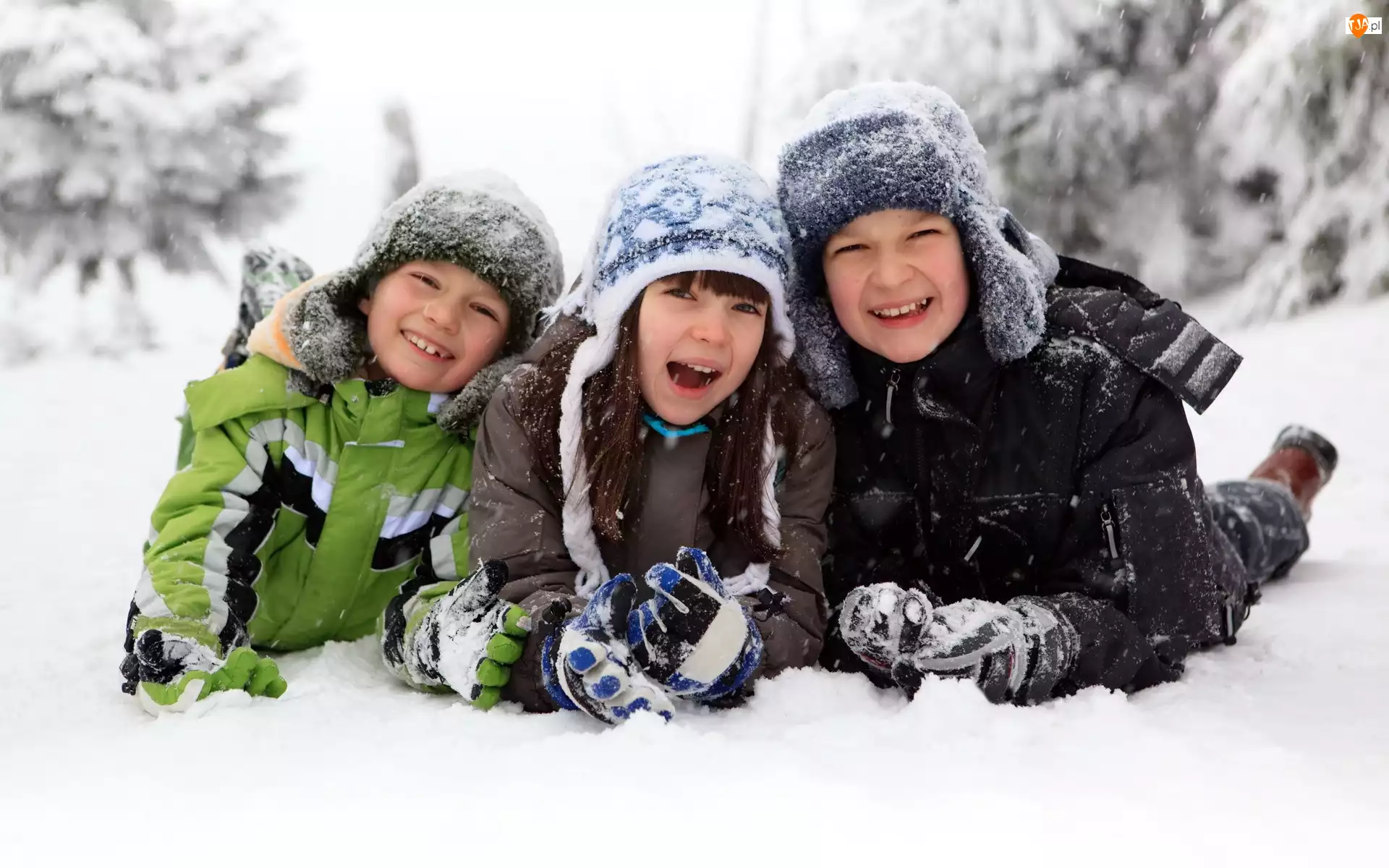 Zima, Zabawa, Dzieci, Troje, Śnieg