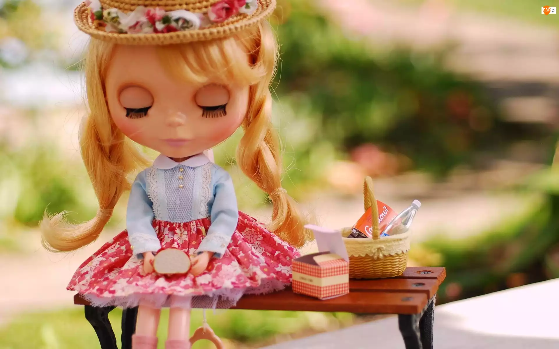 Ławeczka, Zabawka, Lalka, Kapelusik