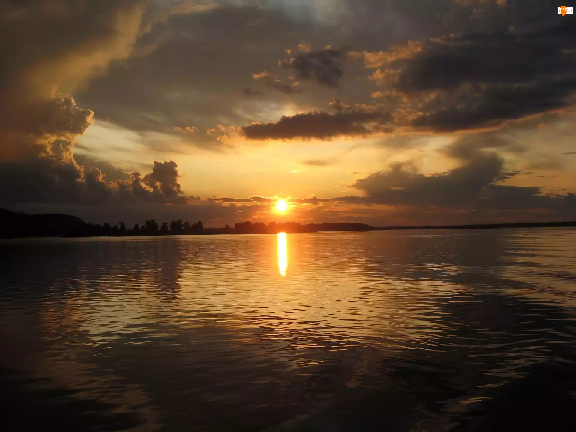 Chmury, Zachód, Słońca, Woda