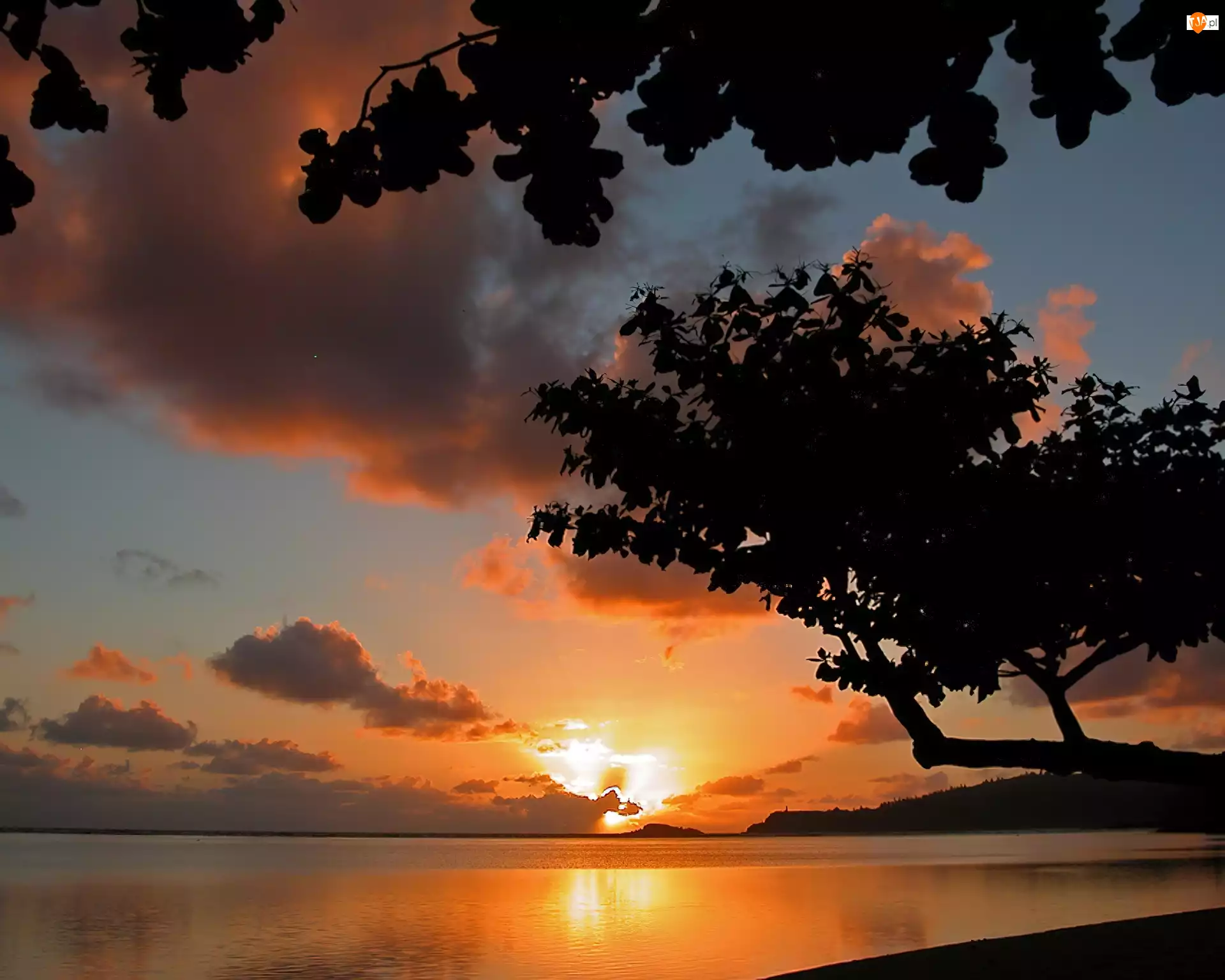 Zachód, Drzewa, Słońca, Morze