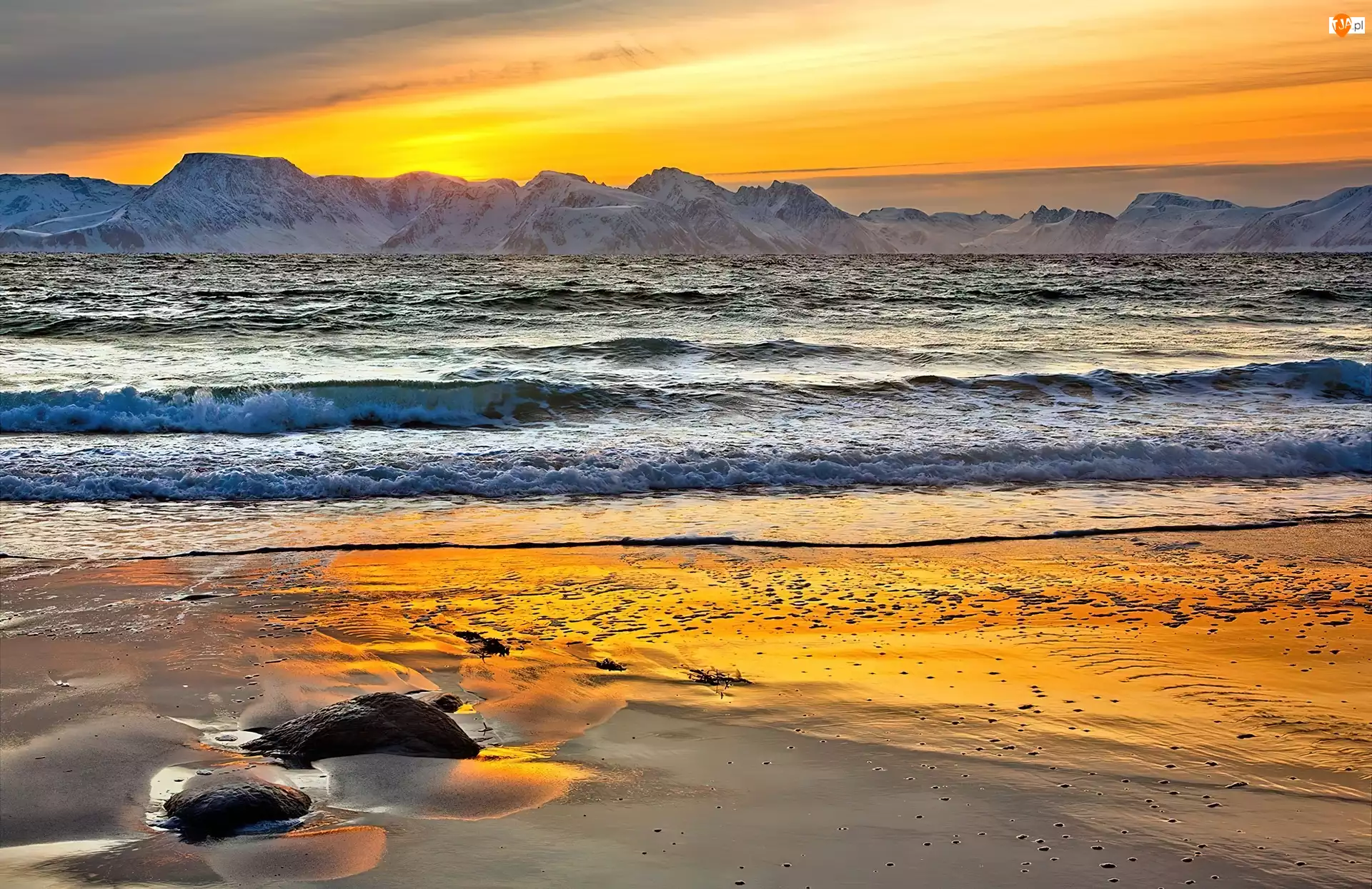 Góry, Zachód, Słońca, Morze