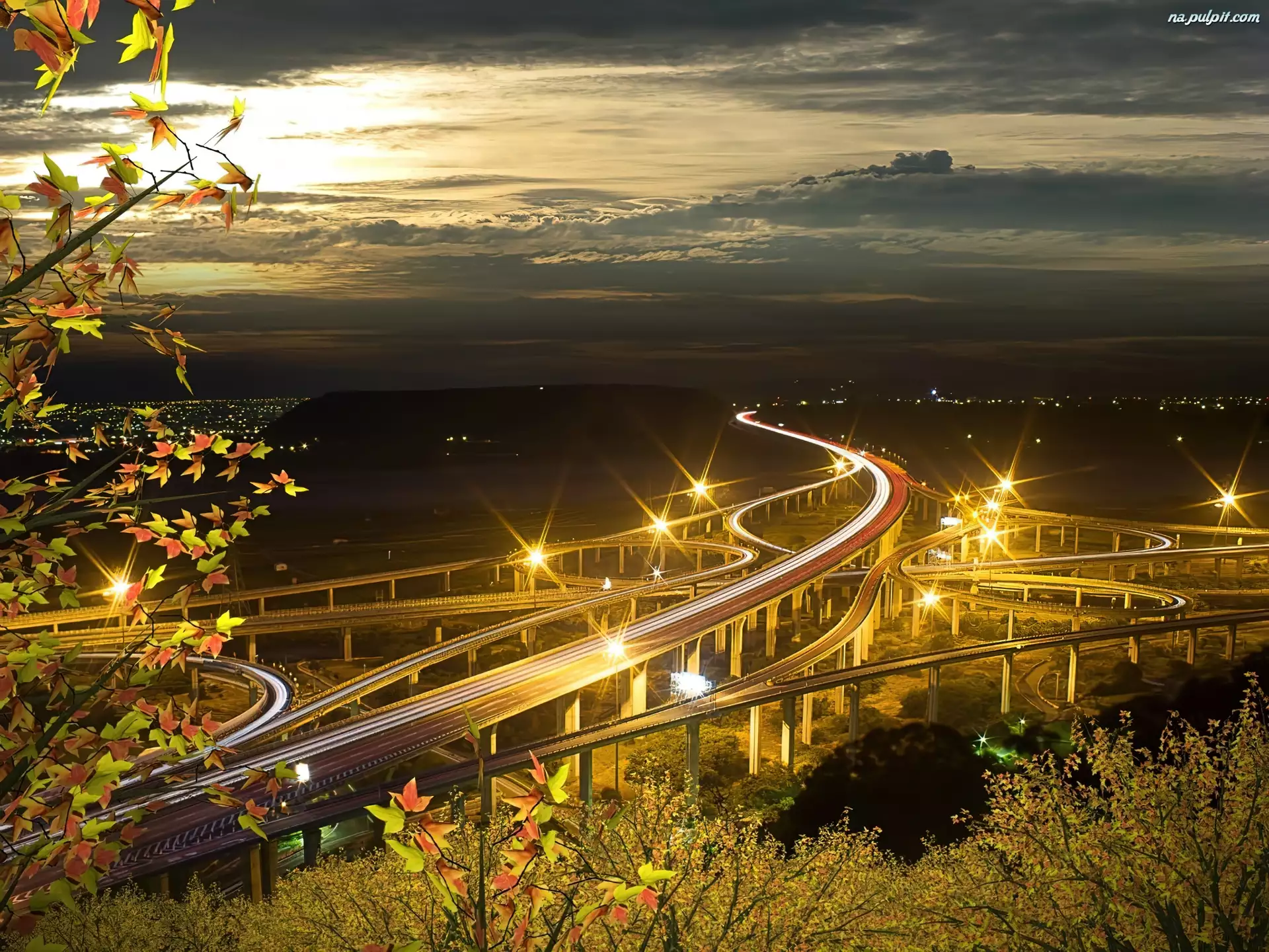 Zachód, Panorama, Oświetlony, Miasta, Wiadukt, S