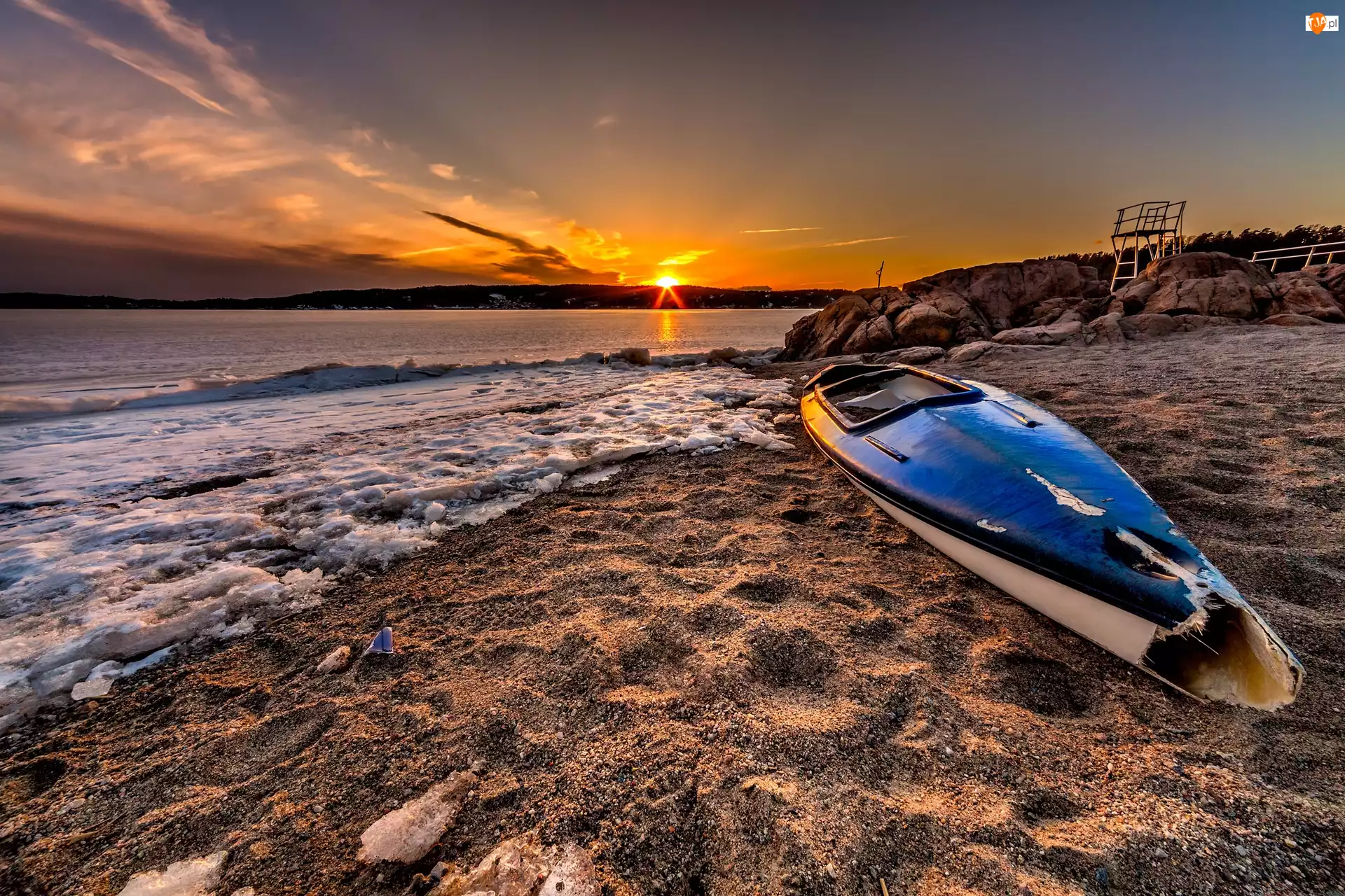 Zachód, Połamany, Morze, Kajak, Plaża, Słońca