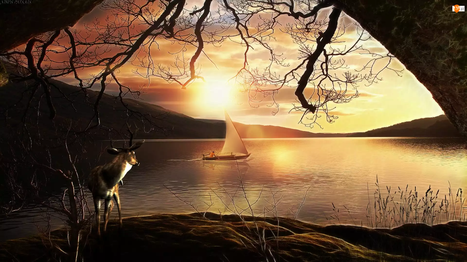 Zachód Słońca, Jelonek, Jezioro, Żaglówka