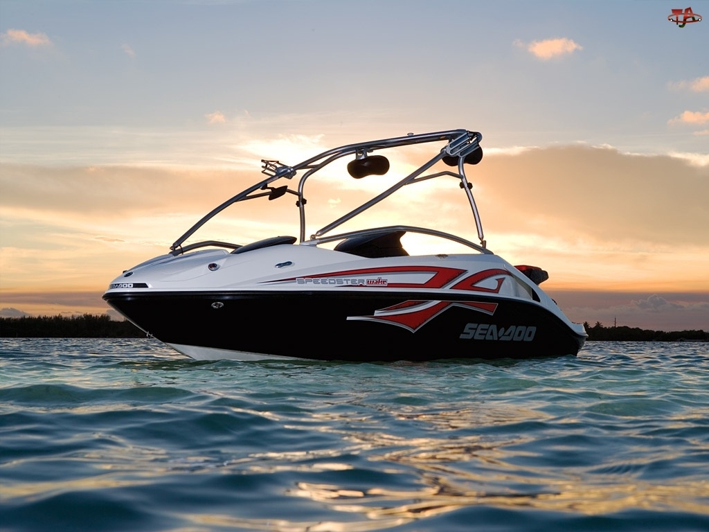 Zachód Słońca, Jezioro, Motorówka