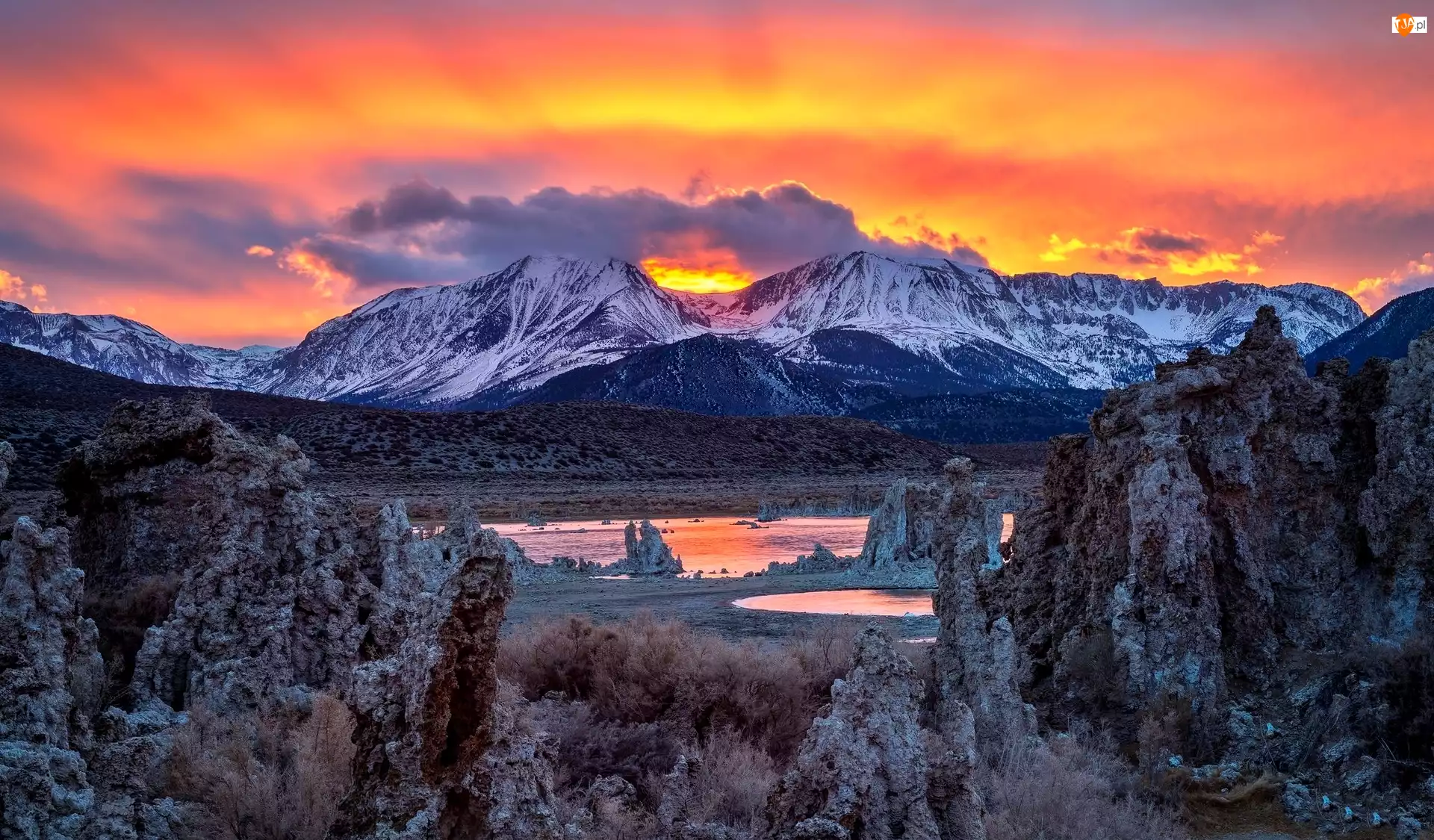 Jezioro Mono Lake, Zachód Słońca, Stan Kalifornia, Stany Zjednoczone, Góry