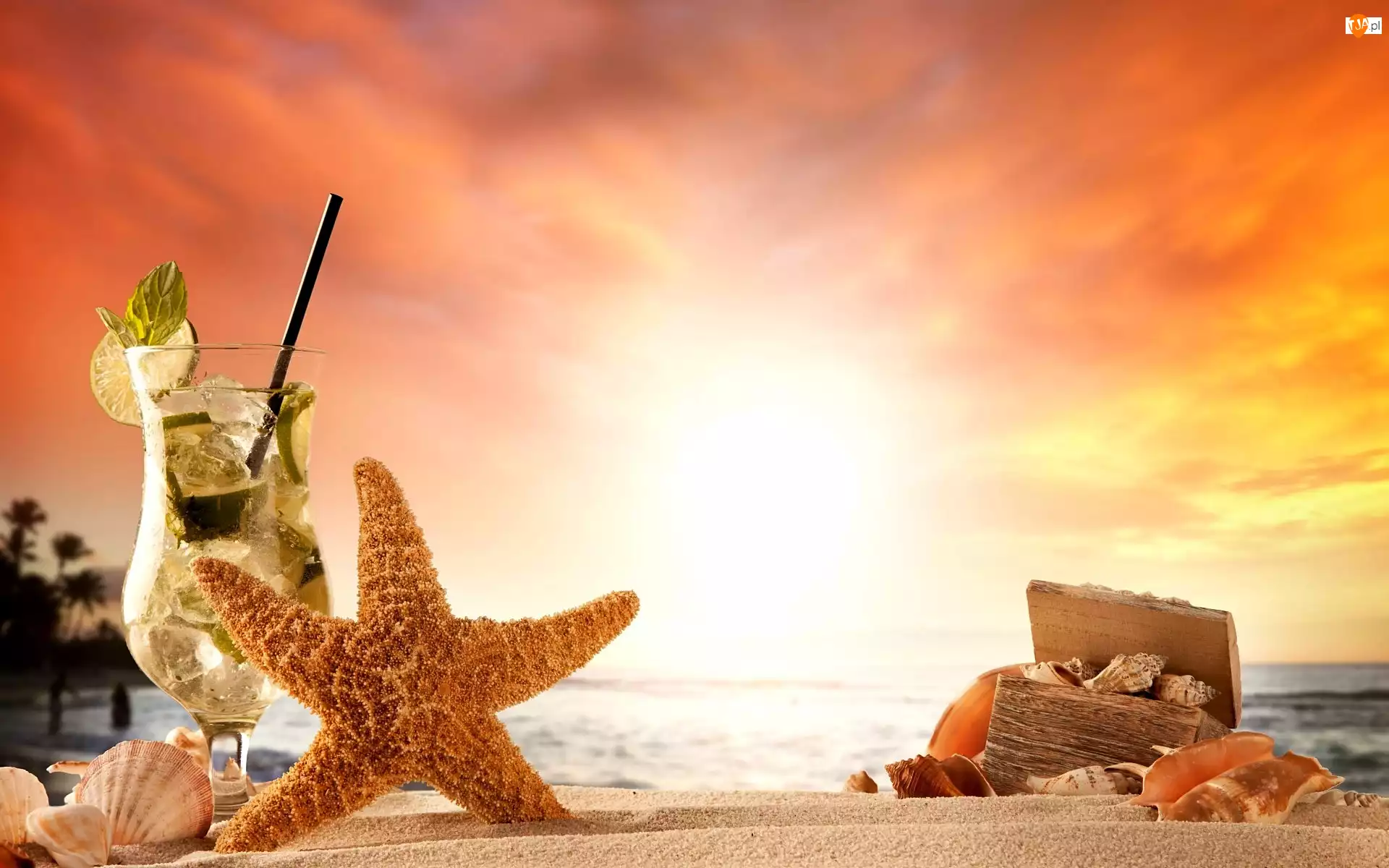 Zachód Słońca, Plaża, Rozgwiazda, Drink Mojito